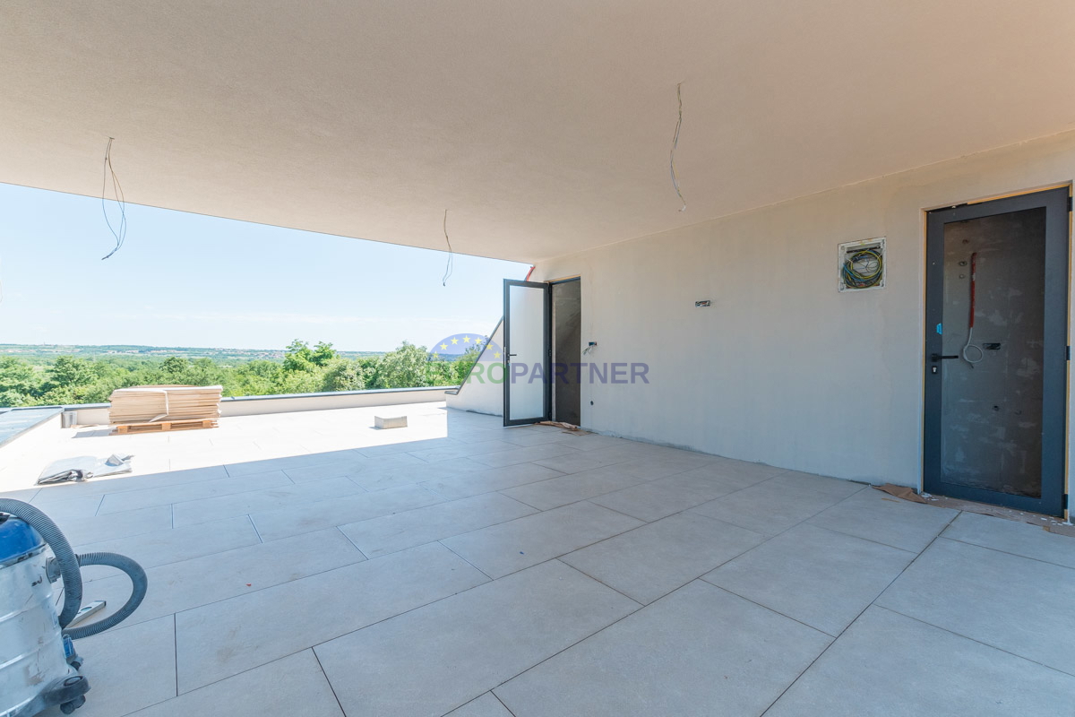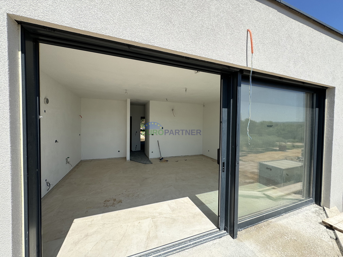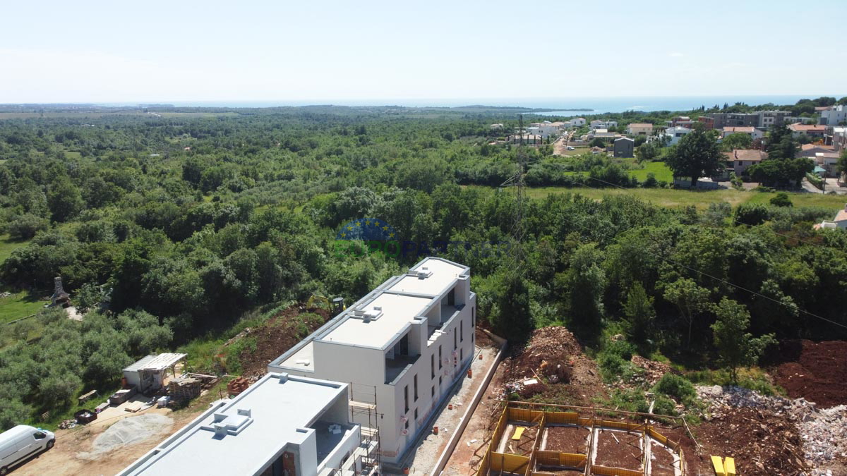 Istra, Poreč - okolica Na prodaju je prostran i moderno dizajniran stan površine 73,78 m2, smješten na prvom katu elegantne zgrade. Stan se sastoji od prostranog dnevnog boravka s otvorenom kuhinjom i blagovaonicom, koja je obogaćena velikom staklenom st