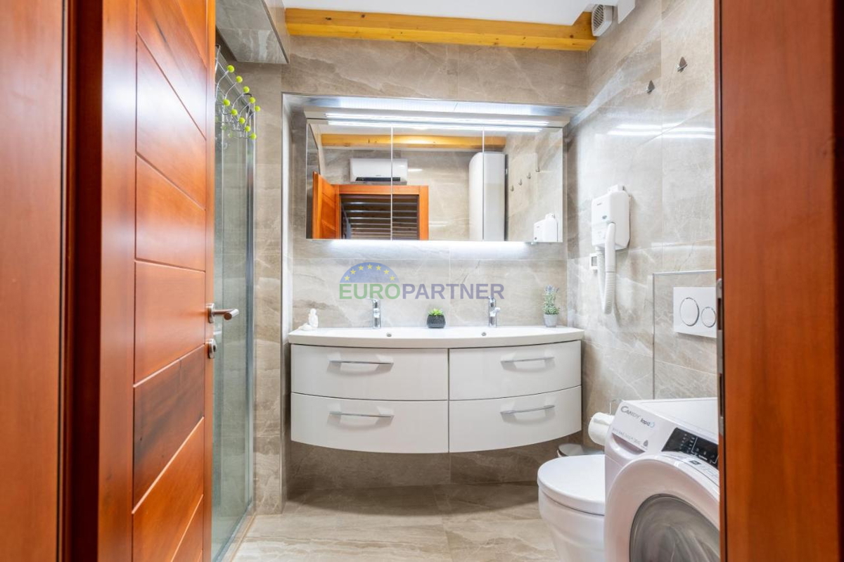 U prodaji je ovaj renoviran stan ukupne stambene površine od 55 m2 u centru Rovinja. Ulazom u stan smjestilo se manje predvorje koje nas dalje vodi prema prostoru otvorenoga koncepta, gdje se nalazi komotni dnevni boravak, moderna i opremljena kuhinja s b