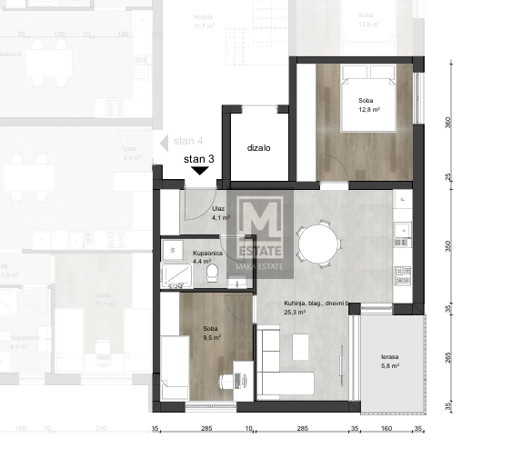 Poreč, okolica, dvosoban stan na drugom katu! U šarmantnom okruženju okolice Poreča, nalazi se očaravajući dvosoban stan na drugom katu nove zgrade, koja se ističe svojim suvremenim dizajnom i udobnim prostorom. Smještena na poželjnoj lokaciji, svega 3 k