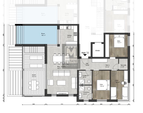 Poreč, okolica, luksuzni penthouse sa bazenom na 3. katu! U srcu prekrasne okolice Poreča, u zgradi s liftom, smješten je ovaj raskošni penthouse koji oduzima dah svojim luksuzom i panoramskim pogledom na more. S ukupnom površinom od 143,05 m2, ovaj pros
