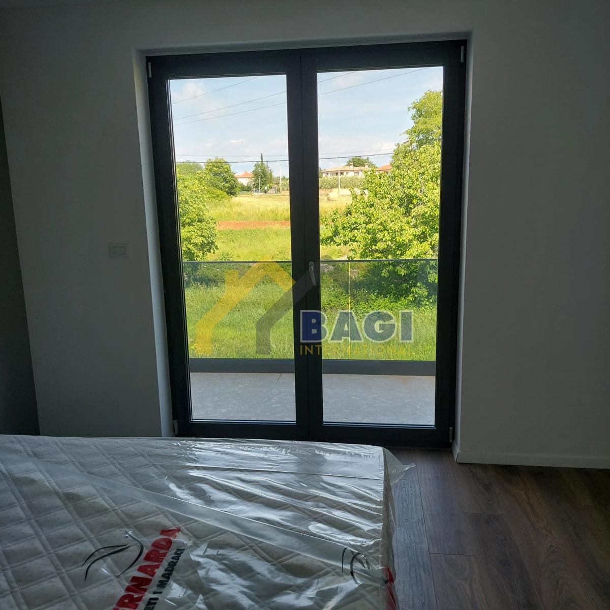 POREČ-Luksuzni stan 101m2-Bazen-Terasa-Novogradnja-Pogled na more Luksuzni stan izrađen i opremljen visokokvalitetnim materijalima, aluminijskom stolarijom-komarnici,podno grjanje, hodnik,kupaone,terasa-keramika,sobe drvene obloge, sustav grijanja i hlađe