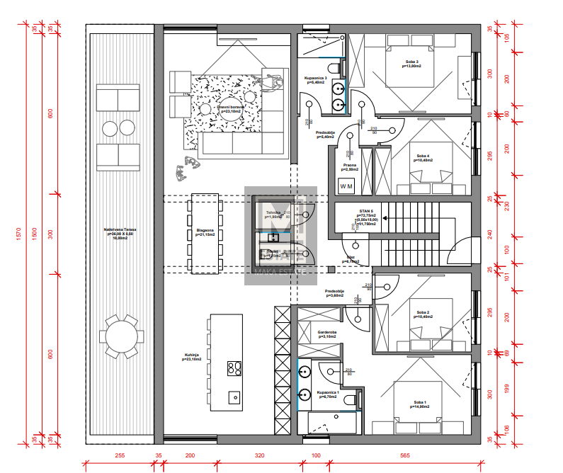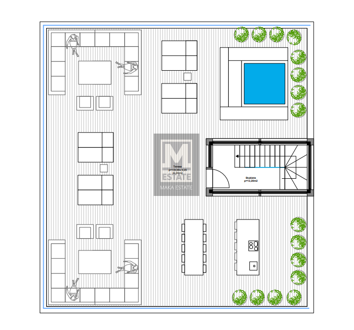 Poreč, okolica, Penthouse s velikom krovnom terasom Prodajemo penthouse u bližoj okolici Poreča, smješten na drugom katu zgrade koja se sastoji od ukupno pet stambenih jedinica. Ovaj luksuzni penthouse prostire se preko cijele etaže zgrade, pružajući mak