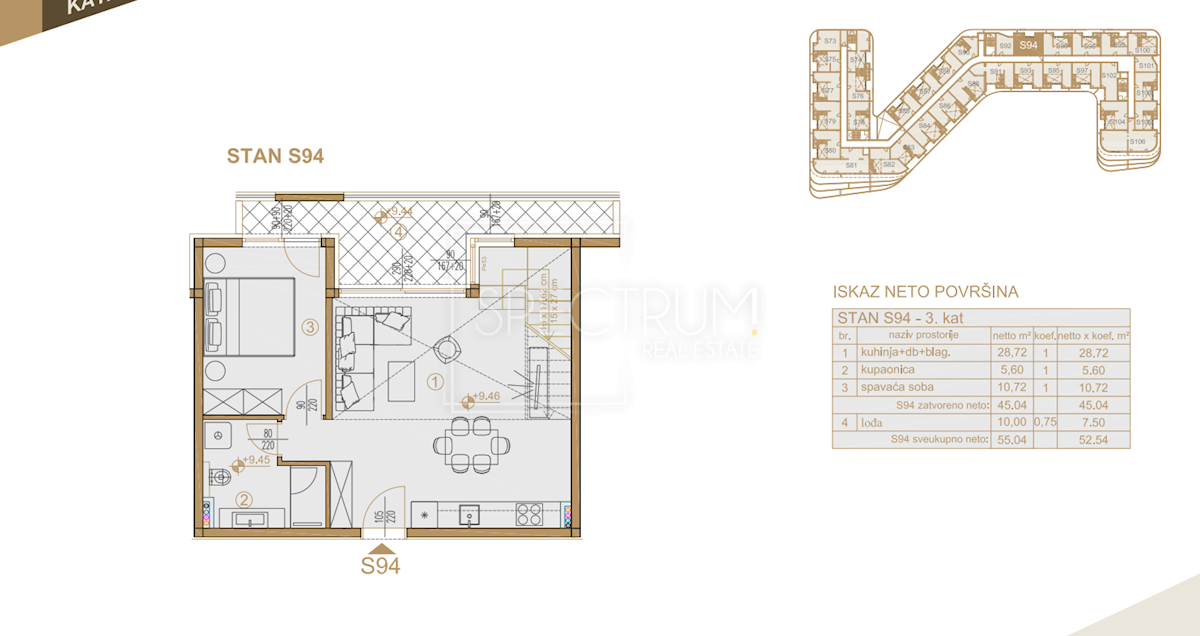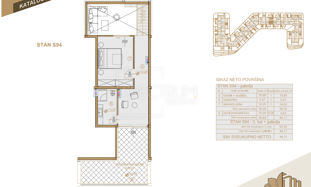 Istra, Poreč Prodaje se novoizgrađeni dvoetažni stan sa pogledom na more u Poreču. Stan se proteže kroz 3.kat i galeriju novoizgrađenog stambeno - poslovnog kompleksa koji se sastoji od 2 podzemne i 3 nadzemne etaže sa galerijama. Površina stana iznosi
