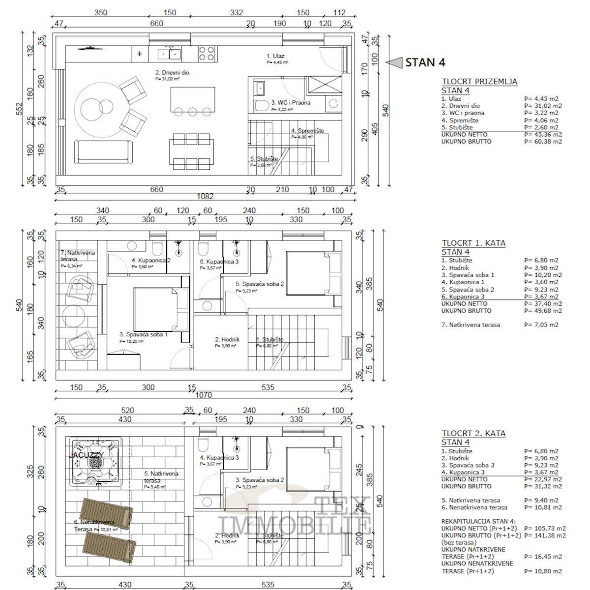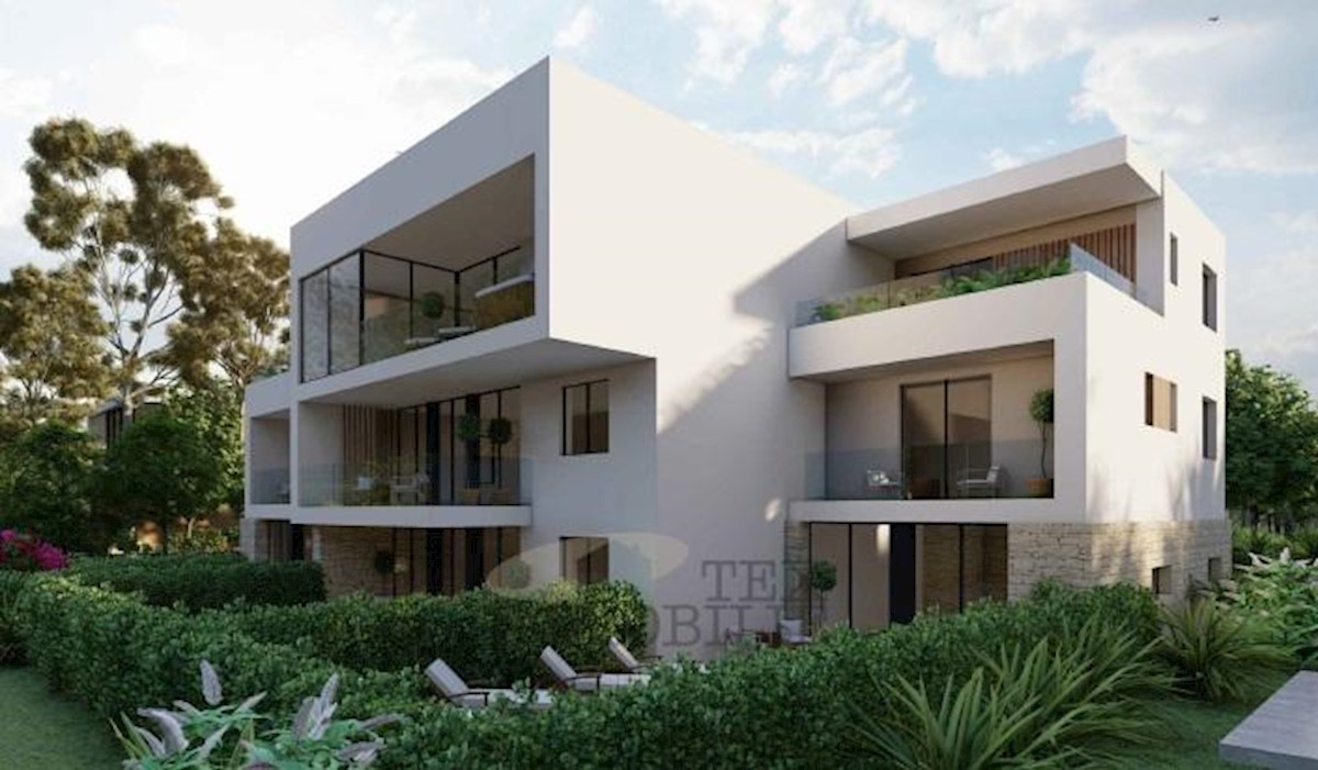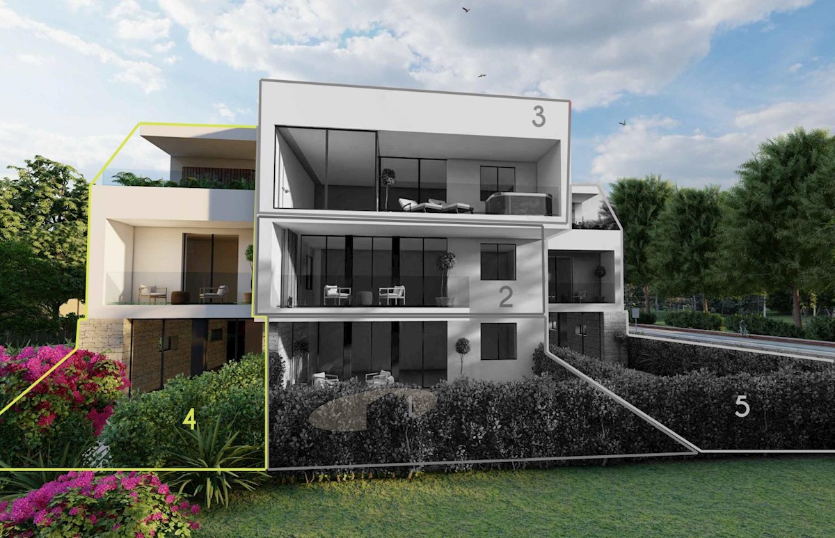 Prodaje se stan sa bazenom i prekrasnim pogledom na more, smješten na odličnoj lokaciji, svega 1 km udaljenosti od prekrasnih plaža i 3 km od centra Poreča. Ovaj stan proteže se kroz sve tri etaže zgrade te ima neto površinu od 105 m2. Prizemlje: ulazni