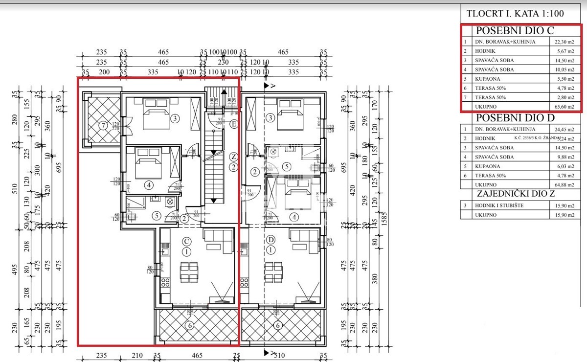 Stan na prvom katu sa spremištem u okolici Poreča Prodaje se stan na prvom katu sa spremištem u okolici Poreča. Stan je veoma komforan te se sastoji od ulaznog hodnika, dvije prostrane spavaće sobe od kojih jedna ima izlaz na privatnu terasu. Iz dnevn