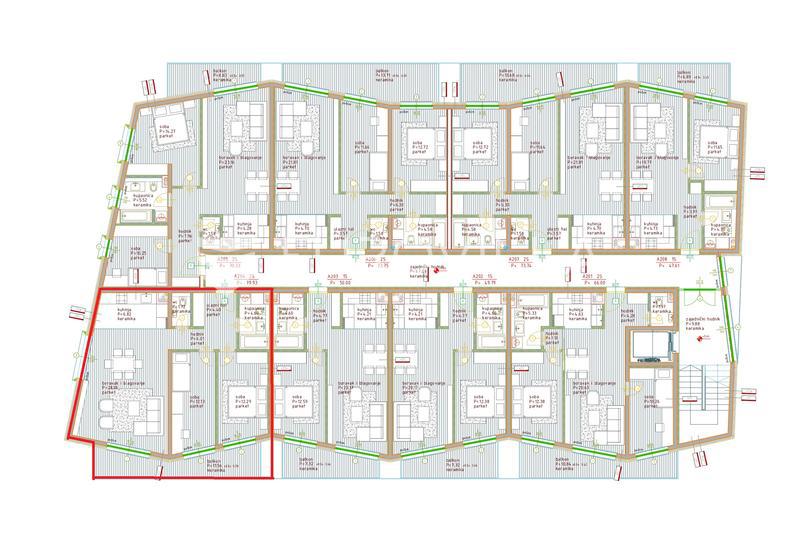 Istra, Poreč -na prodaju moderni višestambeni projekt od sveukupno 30 stanova koji se smjestio u Poreču, na mirnoj lokaciji udaljenoj 800 metara od mora i prvih plaža.Stan oznake A 204 ukupne veličine 88m2, smješten je na 2.katu zgrade, te se sastoji od: