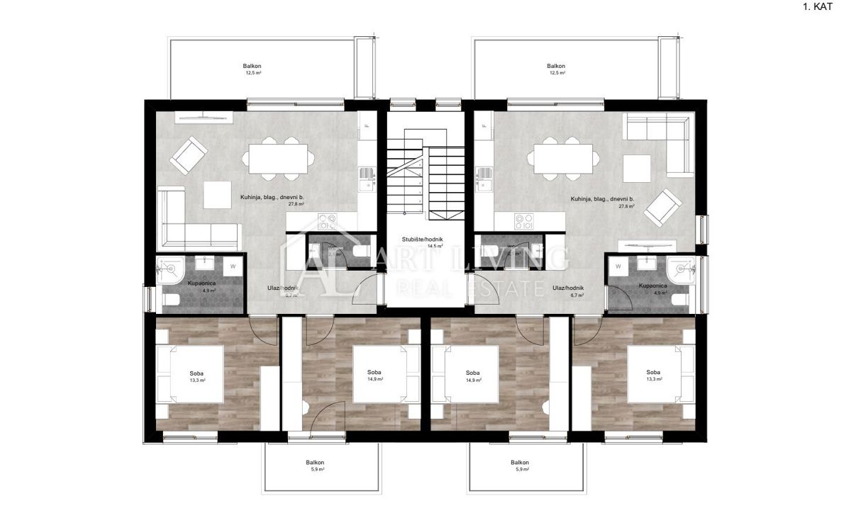 Istra, Poreč, okolica! Zgrada D – Stan L - prvi kat U mirnom i lijepom naselju udaljenom samo 3 km od centra grada Poreča te 2 km od mora i uređenih plaža, prodaje se ovaj moderan stan na prvom katu jedinstvene manje zgrade atraktivne i moderne arhitek