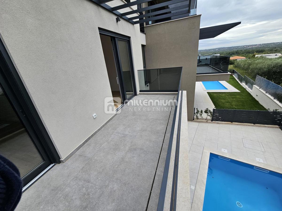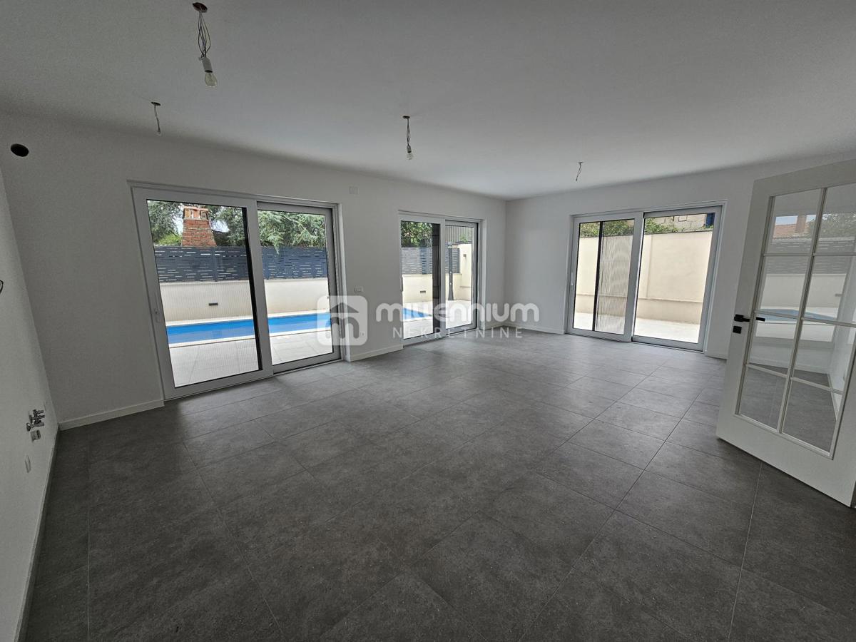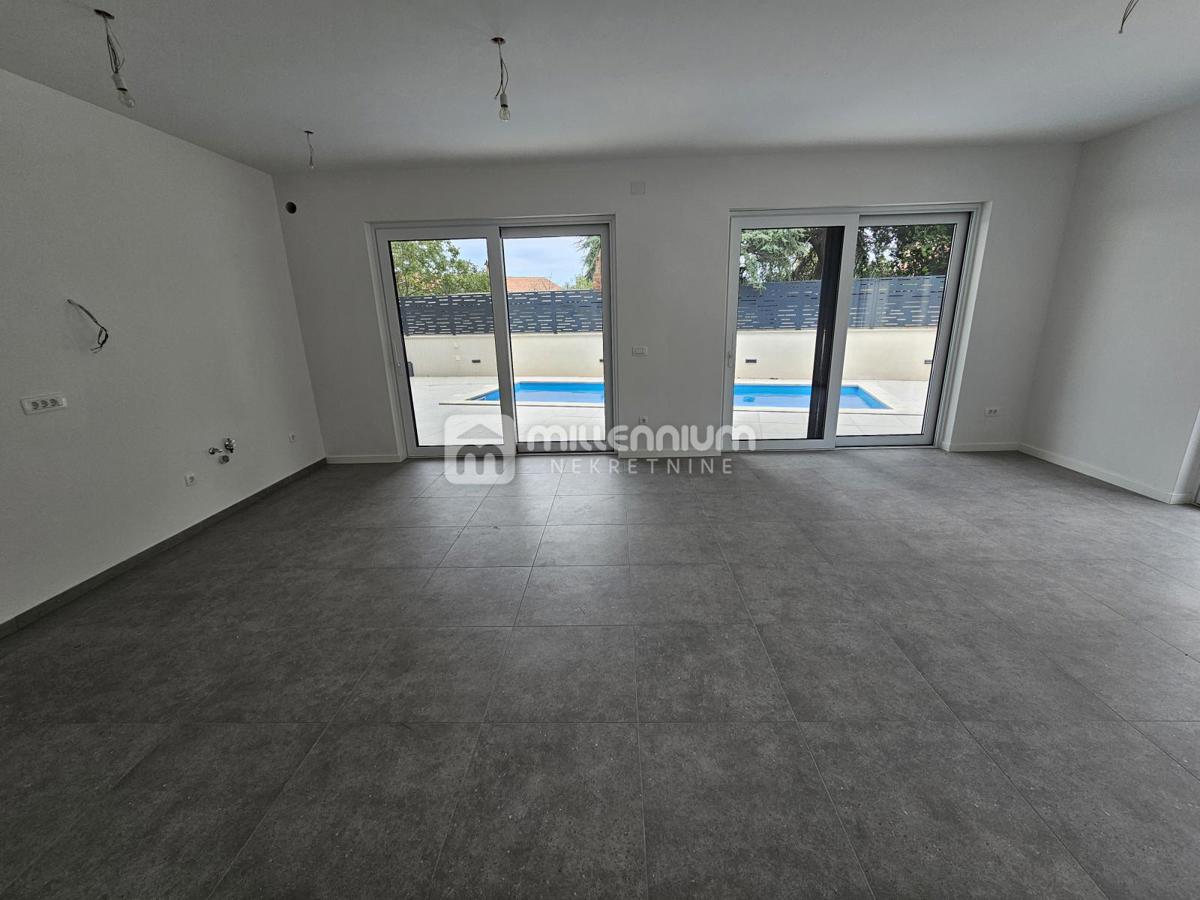Prodaje se dvoetažni apartman u novogradnji u blizini Poreča. Smješten je u manjoj stambenoj zgradi s ukupno četiri stana, proteže se kroz prizemlje i prvi kat s pripadajućom okućnicom s bazenom. Sastoji se od dnevnog boravka s kuhinjom i blagovaonicom,