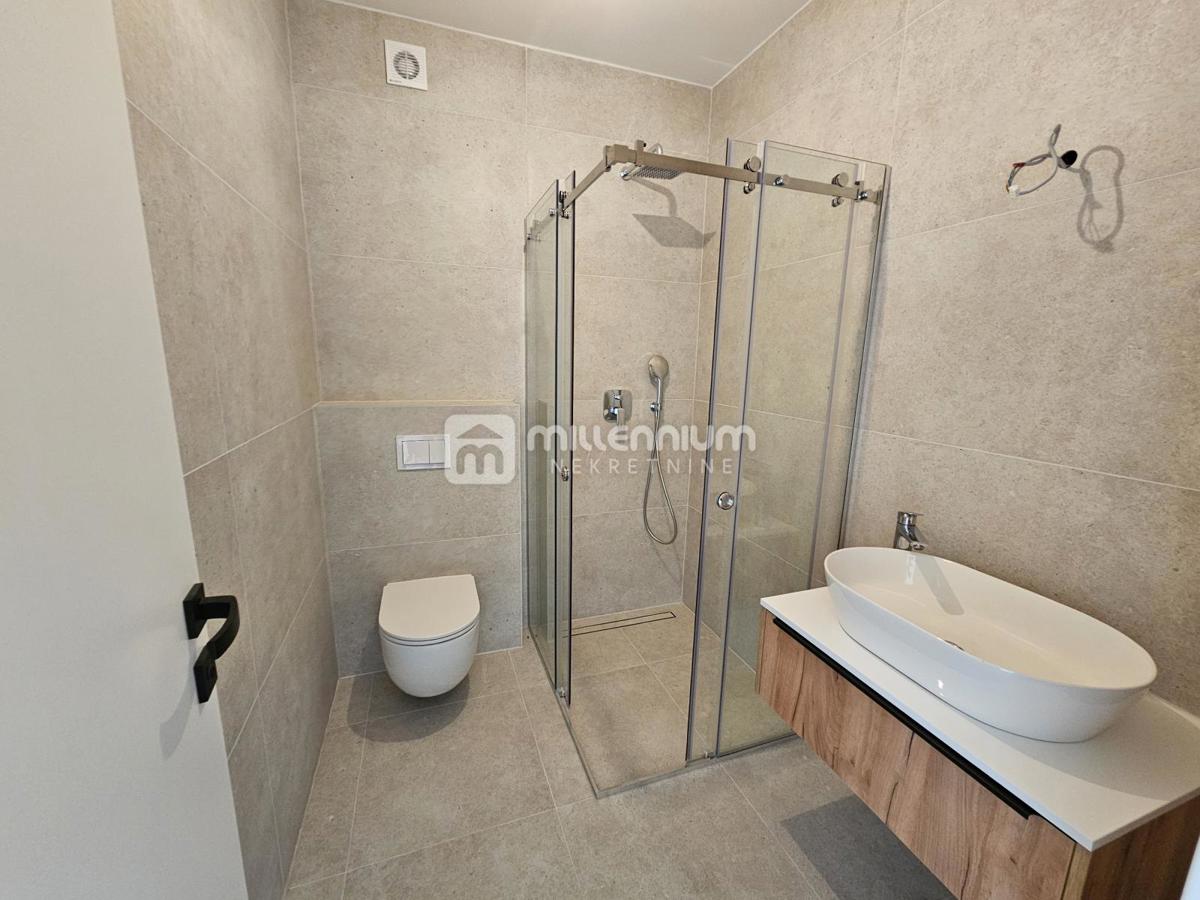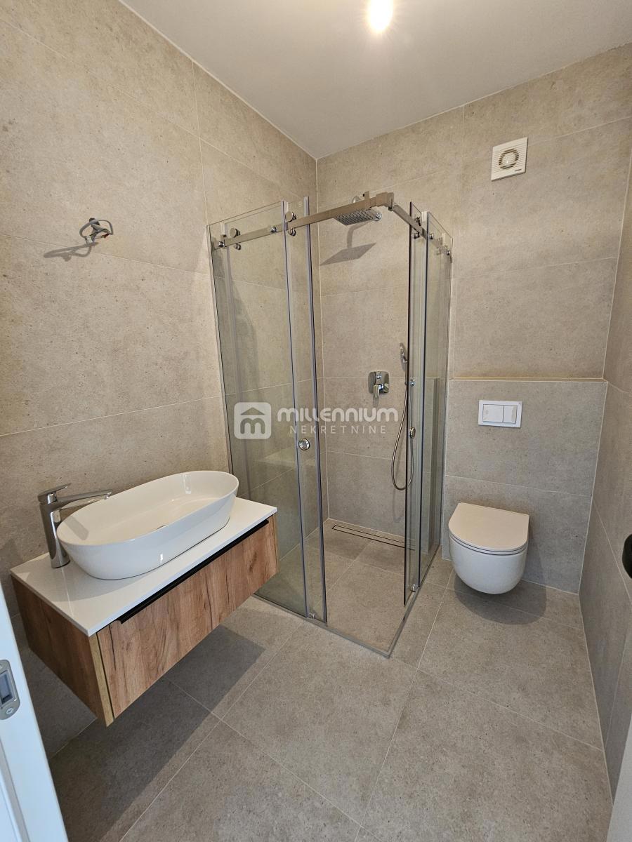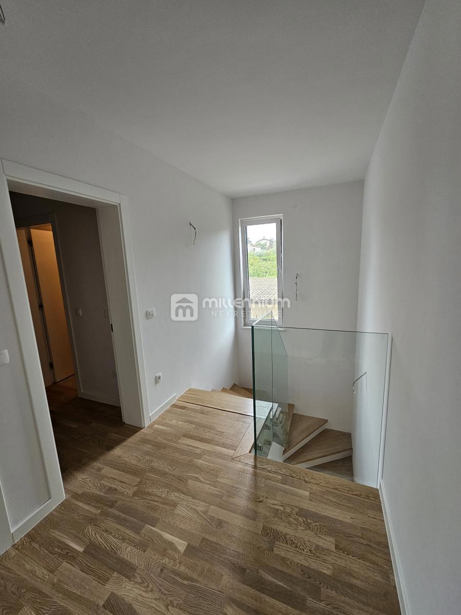 Prodaje se dvoetažni apartman u novogradnji u blizini Poreča. Smješten je u manjoj stambenoj zgradi s ukupno četiri stana, proteže se kroz prizemlje i prvi kat s pripadajućom okućnicom s bazenom. Sastoji se od dnevnog boravka s kuhinjom i blagovaonicom,
