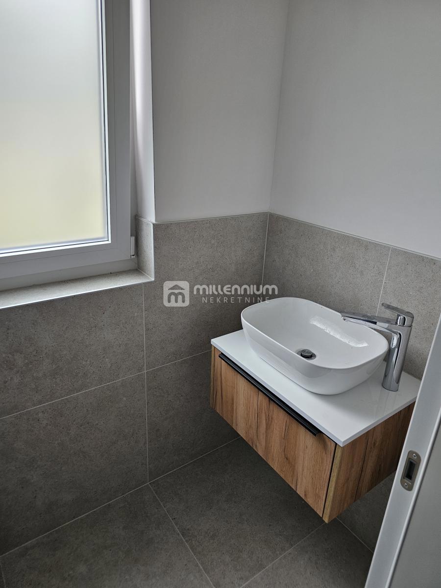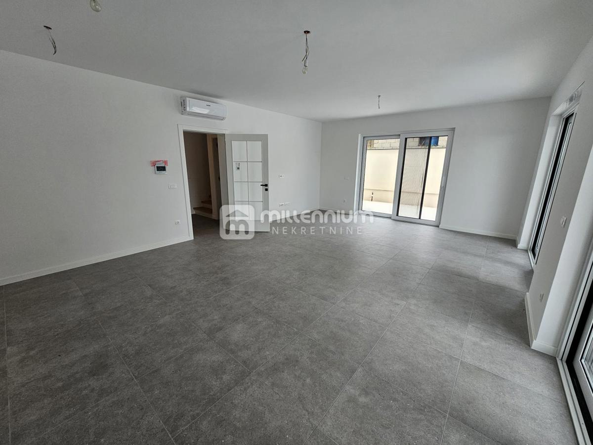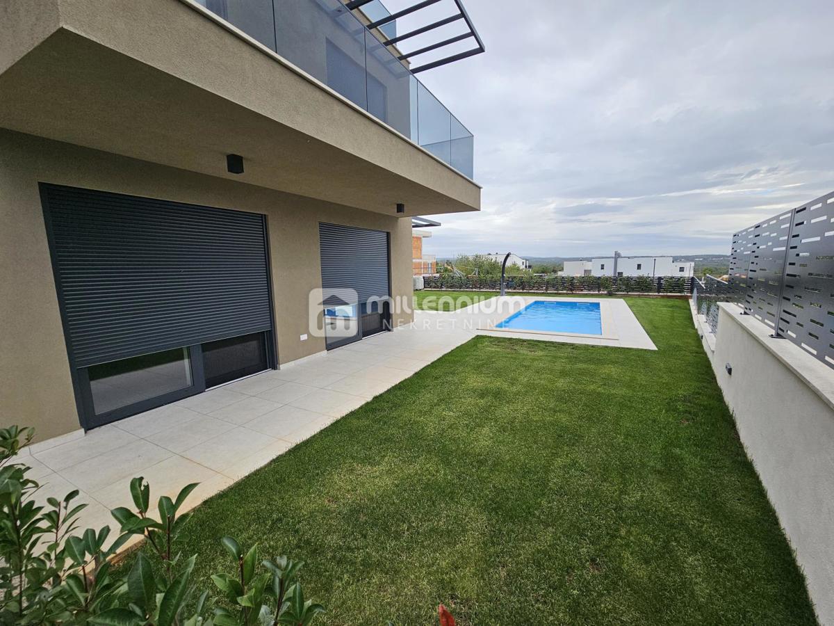 Prodaje se dvoetažni apartman u novogradnji u blizini Poreča. Smješten je u manjoj stambenoj zgradi s ukupno četiri stana, proteže se kroz prizemlje i prvi kat s pripadajućom okućnicom s bazenom. Sastoji se od dnevnog boravka s kuhinjom i blagovaonicom,