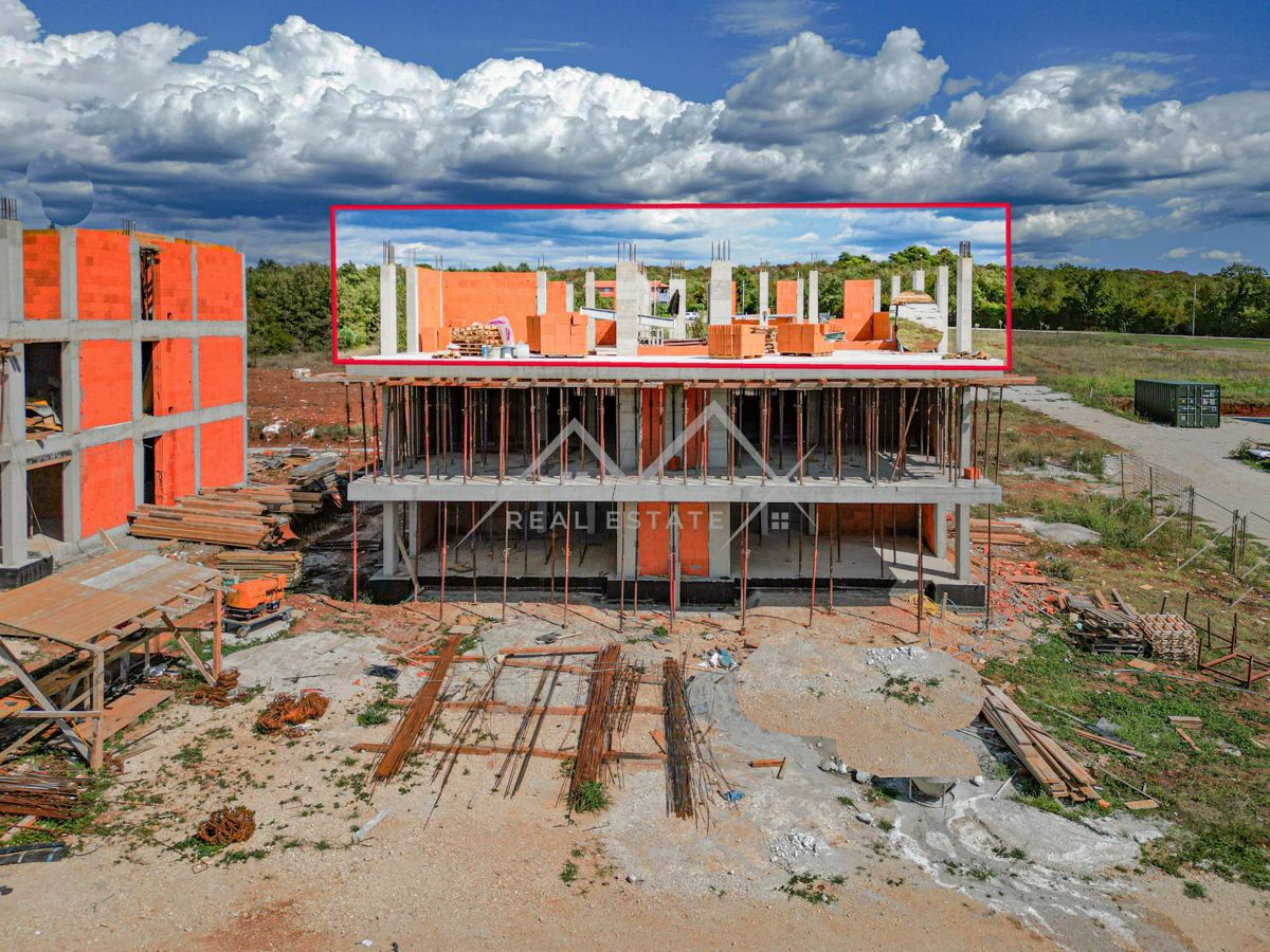 Poreč, luksuzni PENTHAUSE s terasom, 2 km od centra Poreča Prodaje se prostrani penthouse u izgradnji, smješten na traženoj lokaciji samo 2 km od centra Poreča. Ova moderna novogradnja nudi 153,35 m2 neto stambenog prostora, koji obuhvaća prostrani dnevn
