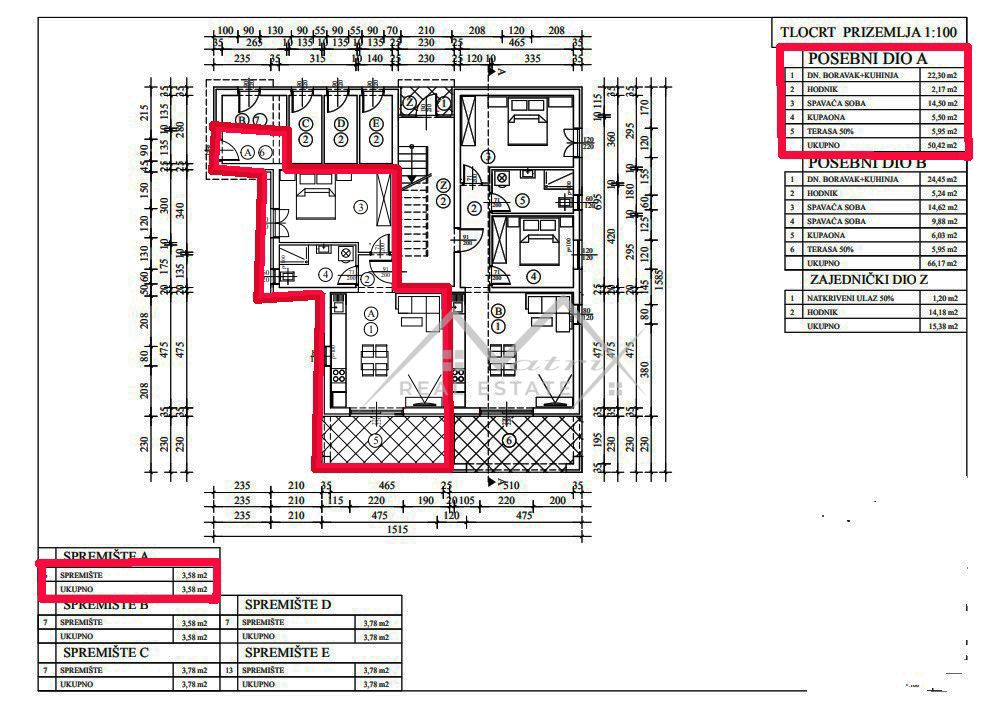 Poreč okolica, stan u prizemlju s prostranim dvorištem novogradnja U mirnom okruženju nedaleko od centra Poreča, smjestio se ovaj moderni stan u prizemlju stambene zgrade s pet stanova. Stan ima ukupnu površinu od 54 m2 i uključuje dnevni boravak, blagov