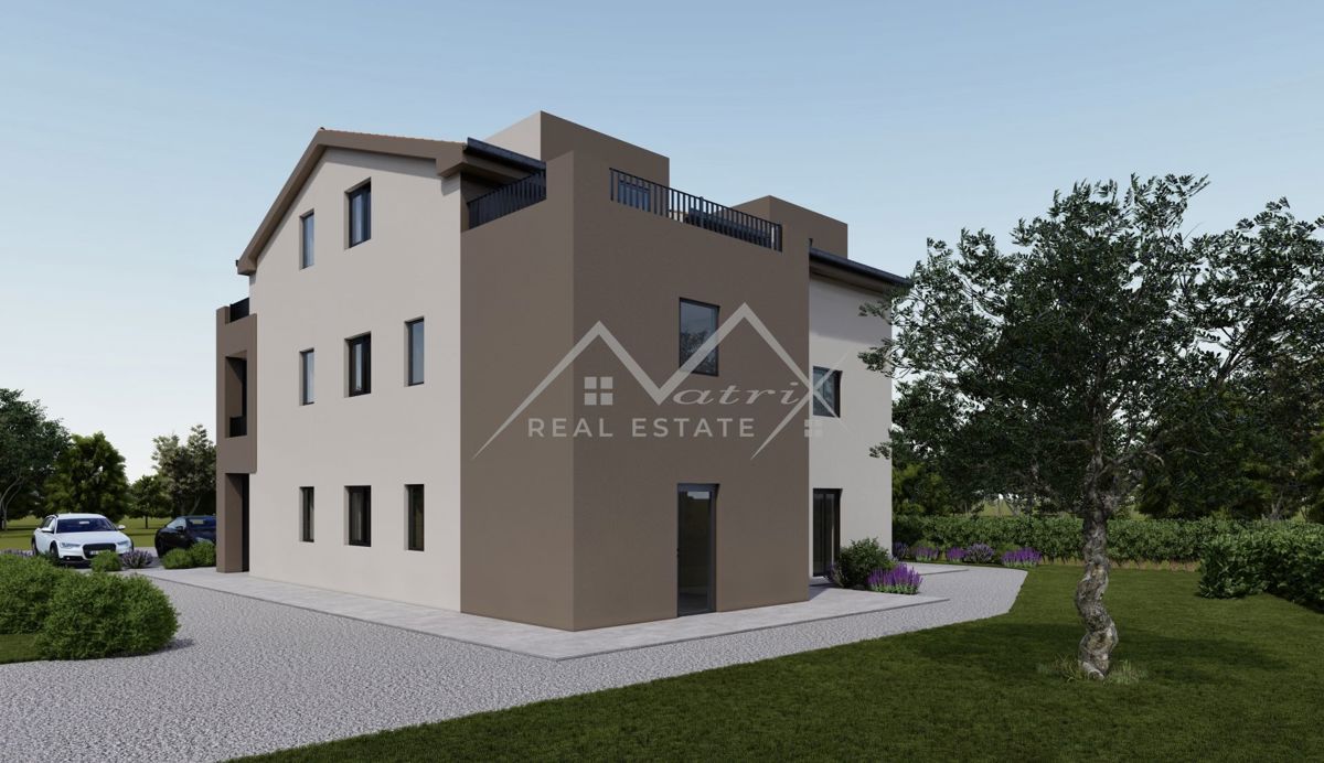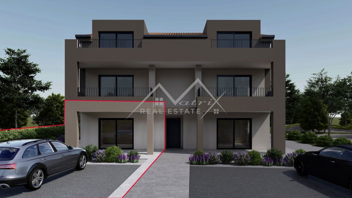 Poreč okolica, stan u prizemlju s prostranim dvorištem novogradnja