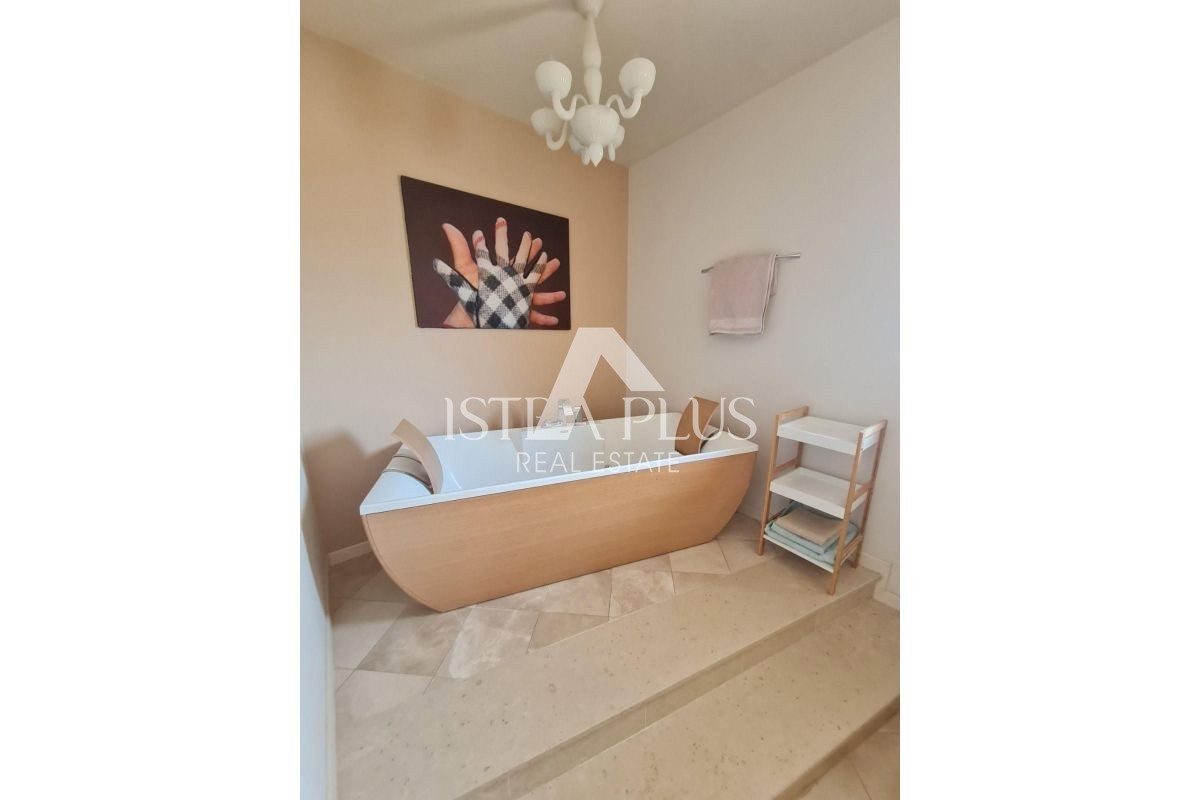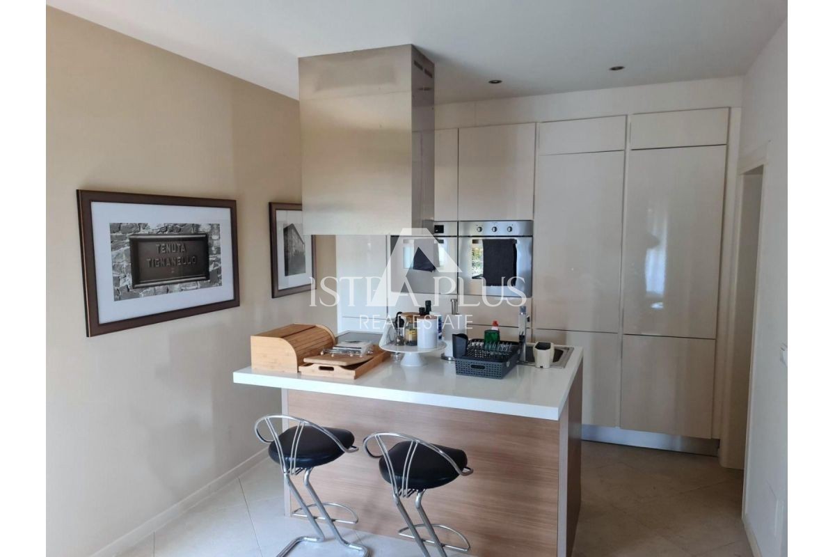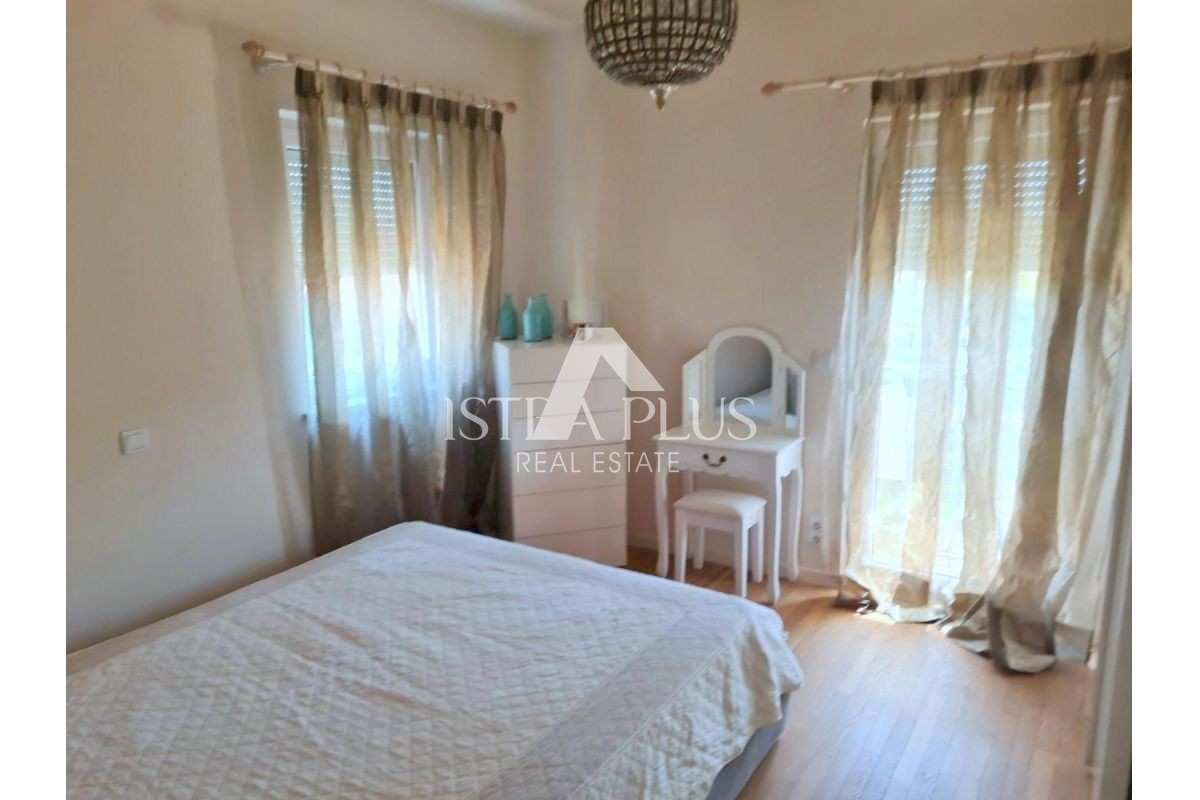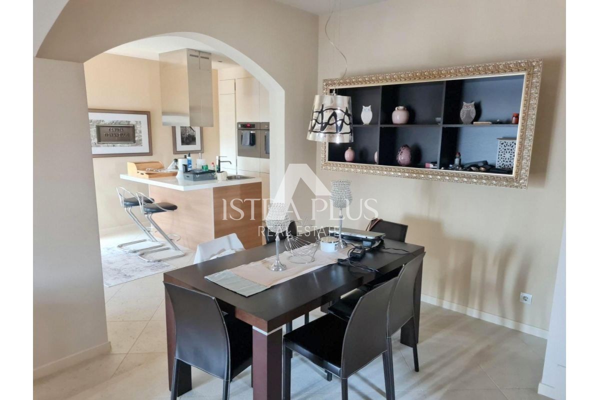 S265 stan 1.5 km od Poreča , luksuzno namješten . Stan se sastoji od prdsoblja, kuhinje sa blagovaonom i dnevnog boravka, dvije spavaće sobe, ostave, kupatila, logge, balkona, terase , spremišta i vrta. Stan je vrlo dobra nekretnina za rješavanje stamben