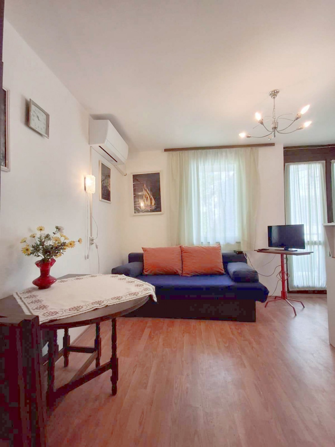 Červar porat – cca. 300 m od mora na prodaji je dvosoban stan, površine 28 m². Stan se nalazi na drugom katu stambene zgrade. Sadrži: dnevni boravak sa kuhinjom, spavaću sobu, kupaonicu i balkon. Grijanje i hlađenje: klima.