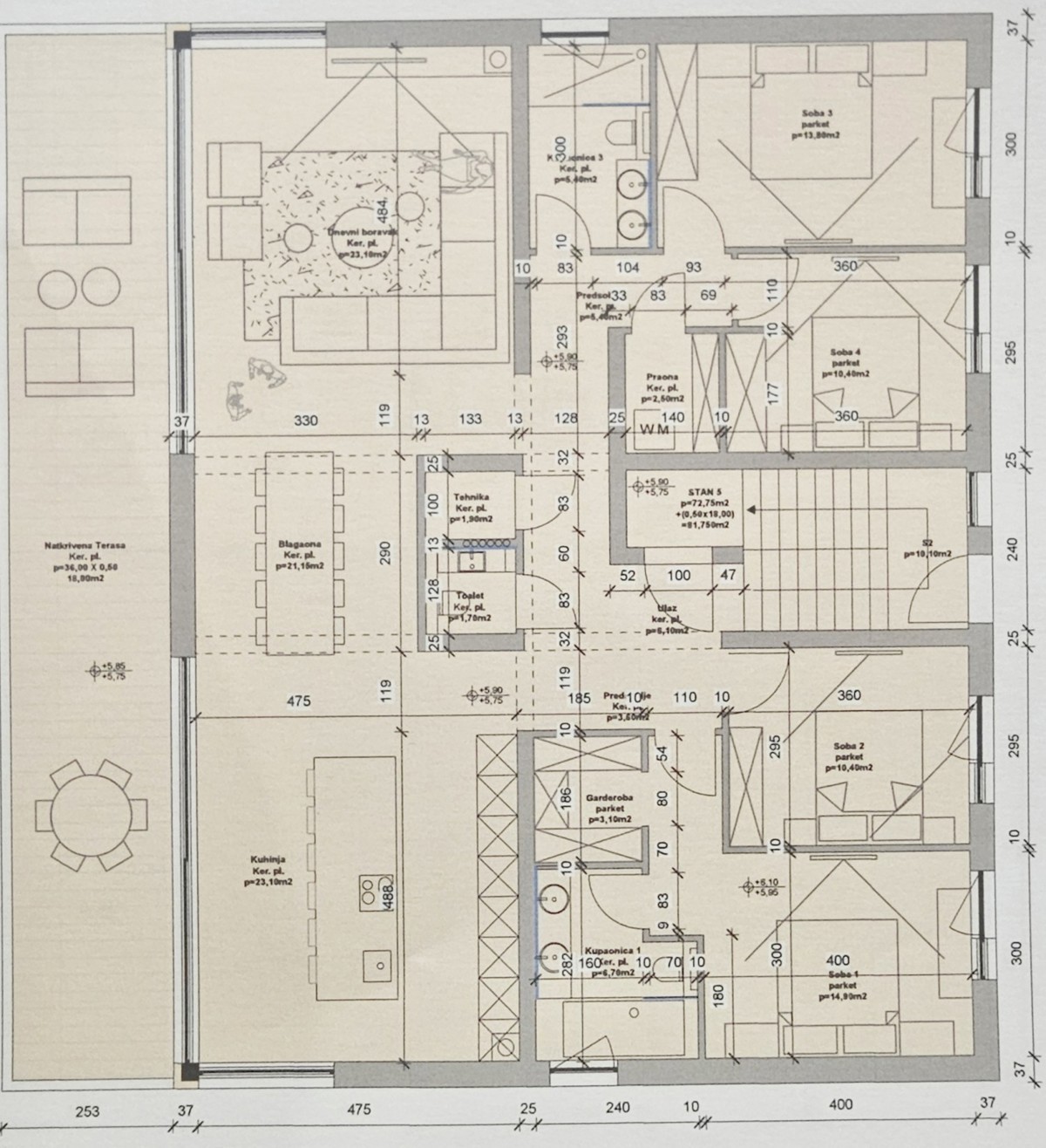 POREČ, luksuzni penthouse na drugom katu moderne stambene zgrade na iznimno mirnoj lokaciji, od ca 220 m2 neto površine, udaljenoj cca 2500 metara od mora i od od grada- Sastoji se od prostranog dnevnog boravka, kuhinje i prostrane blagovaonice, velike t