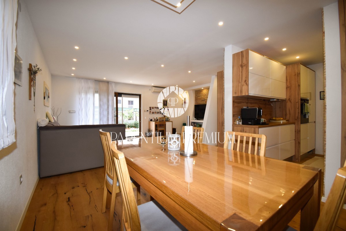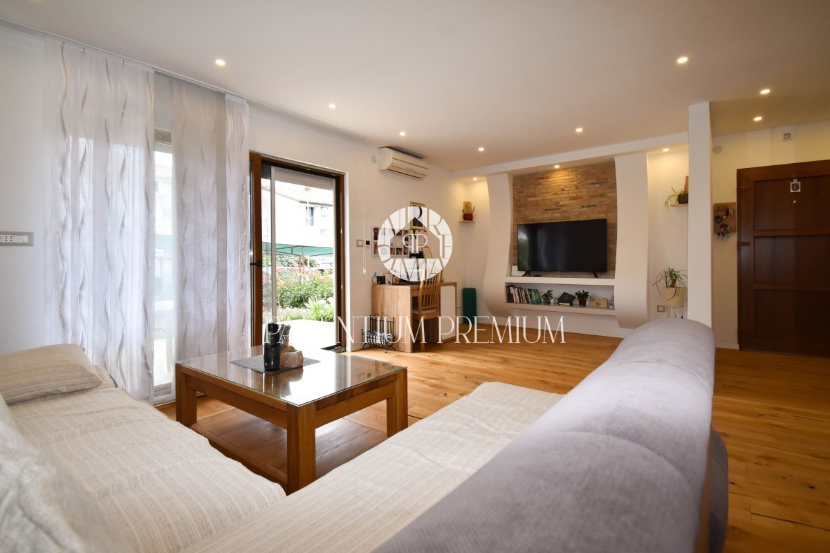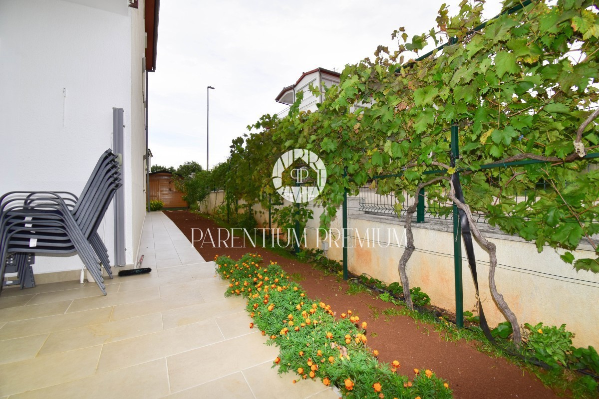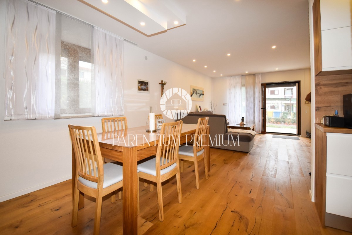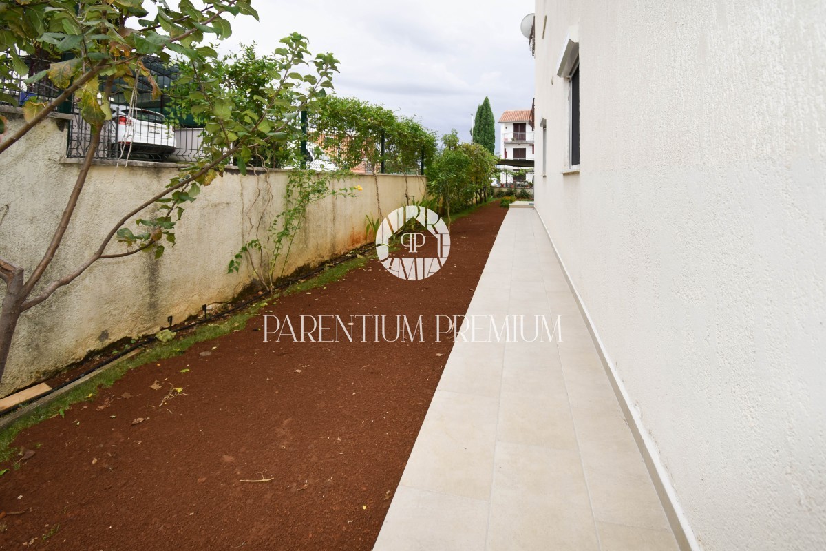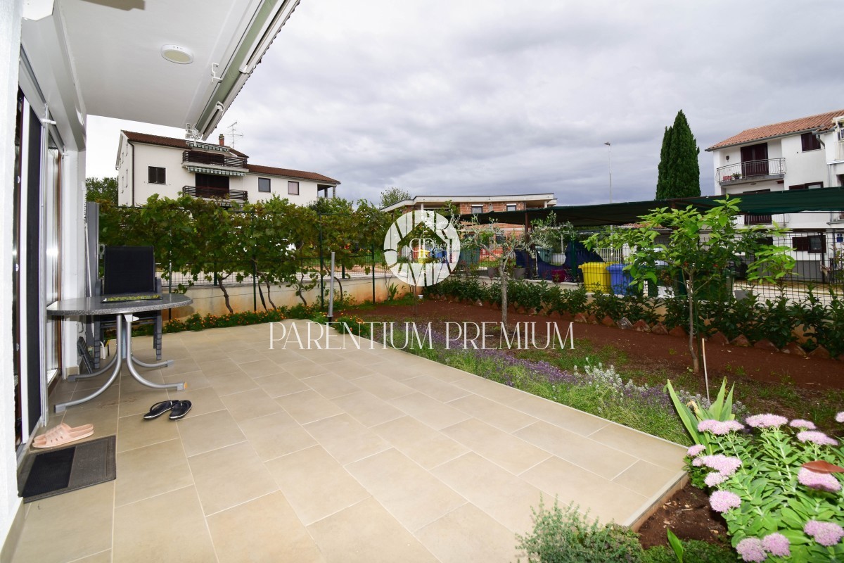 Istra, Poreč Prodaje se odličan stan u prizemlju stambene zgrade ukupne površine od 85,66m2 i dvorištem na korištenje od 155m2, udaljen samo 800m od prekrasnih plaža kao što su Materada i Saladinka. Stan je kompletno renoviran prije 2 godine (struja, vo