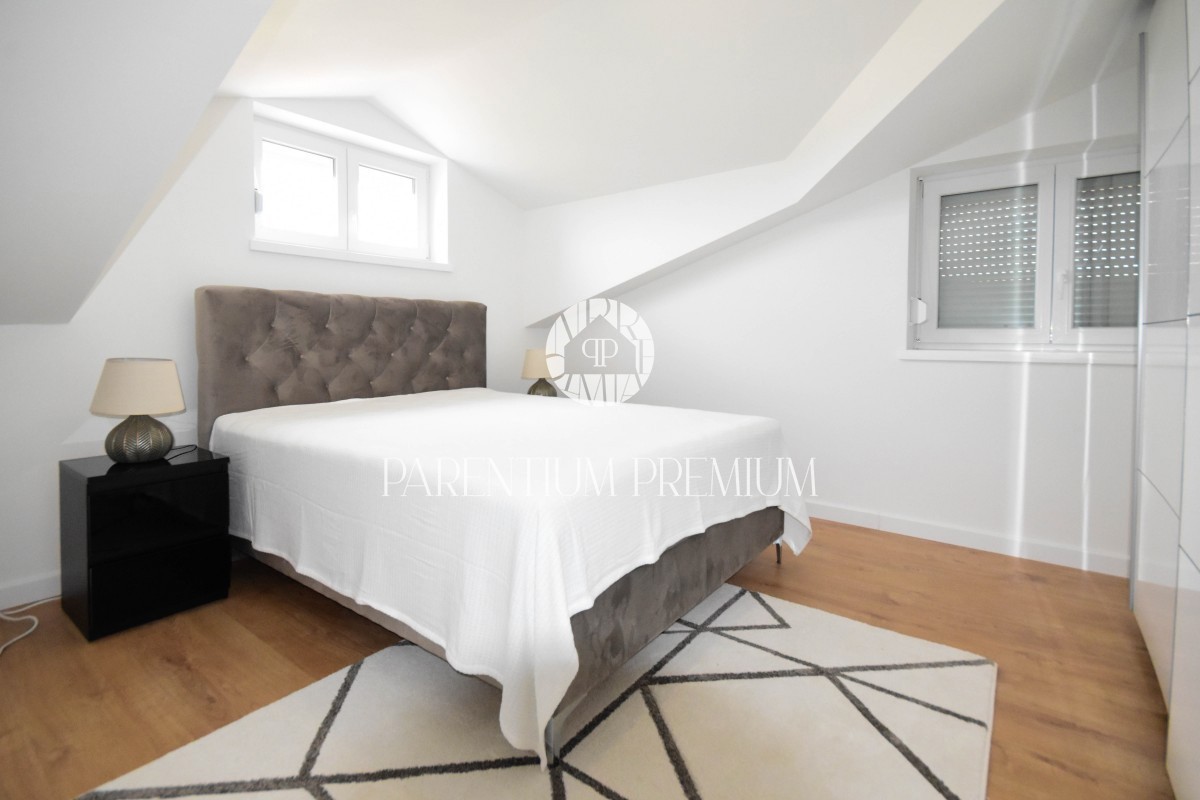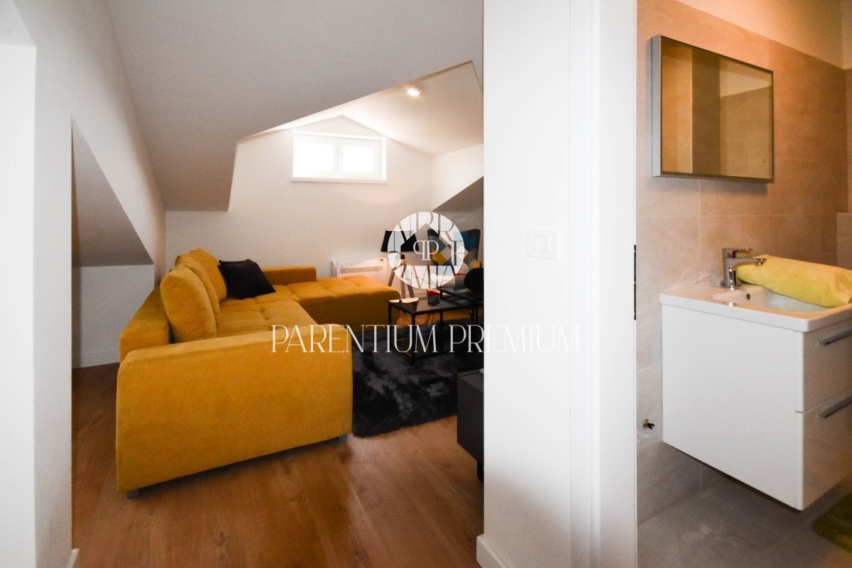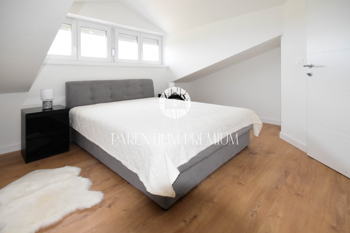 Istra, Poreč okolica Prodaje se ovaj kompletno uređeni stan u potkrovlju novoizgrađene zgrade površine od 69,29m2. Stan se sastoji od ulaznog hodnika, dnevnog boravka, kuhinje, blagovaone, 2 spavaće sobe i kupatila. Grijanje/hlađenje stana je omogućen