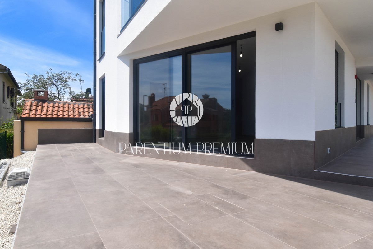 Stan u modernoj zgradi sa dvorištem udaljen 400m od plaže
