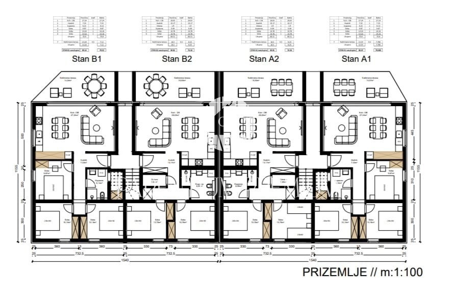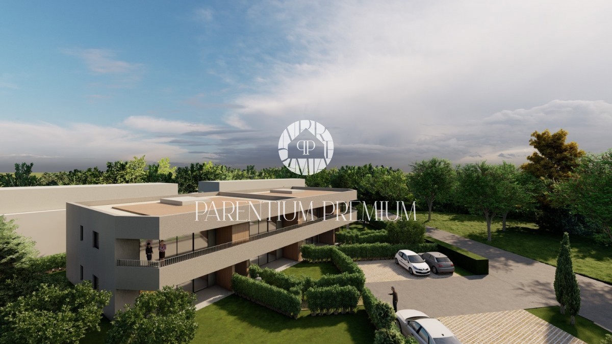 Poreč, okolica - Tar U novoj, modernoj stambenoj zgradi kreće izgradnja ukupno 8 stanova. Stan "a1 u prizemlju se sastoji od hodnika, dnevnog boravka, kuhinje sa blagovaonom te izlazom na natkrivenu terasu, 3spavaće sobe, kupaonice, ostave. Stanu