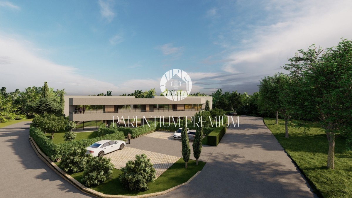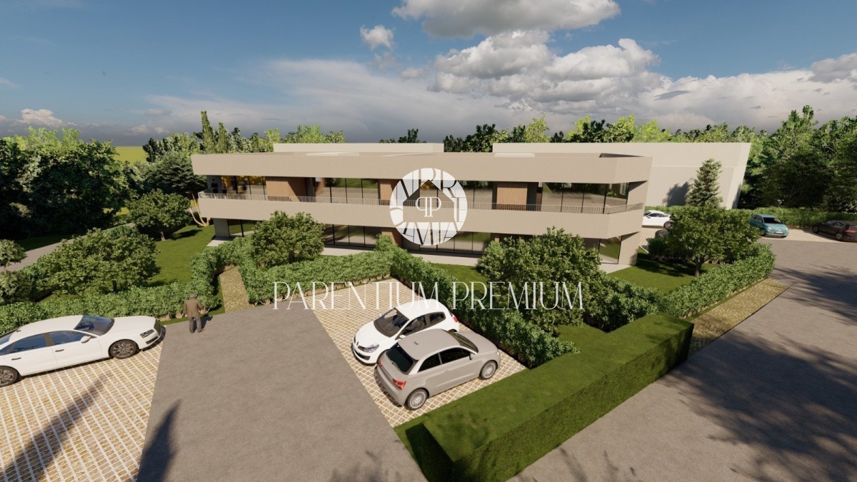 Poreč, okolica - Tar U novoj, modernoj stambenoj zgradi kreće izgradnja ukupno 8 stanova. Stan "A3" smješten je na 1. katu ove nove moderne zgrade i sastoji se od hodnika, dnevnog boravka, kuhinje sa blagovaonom te izlazom na natkrivenu terasu, 3 s