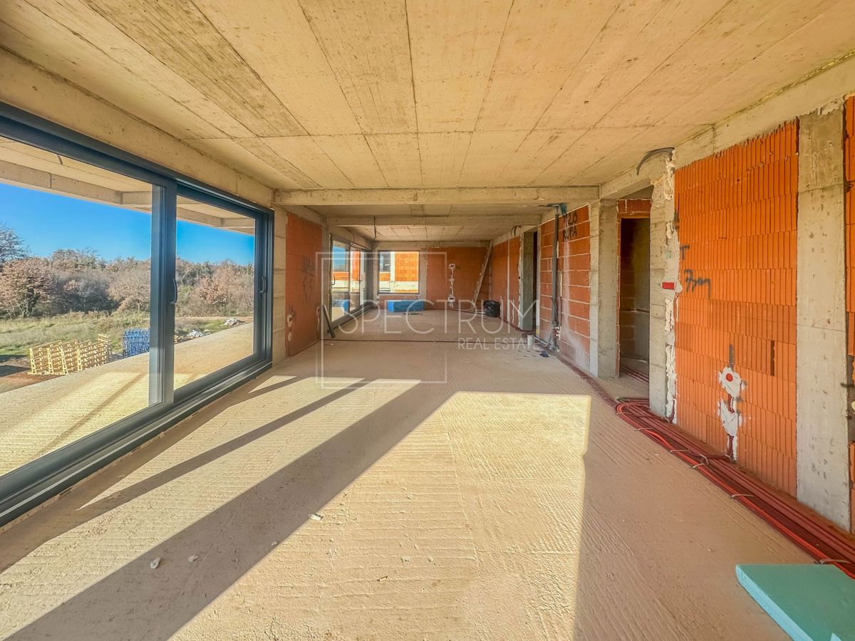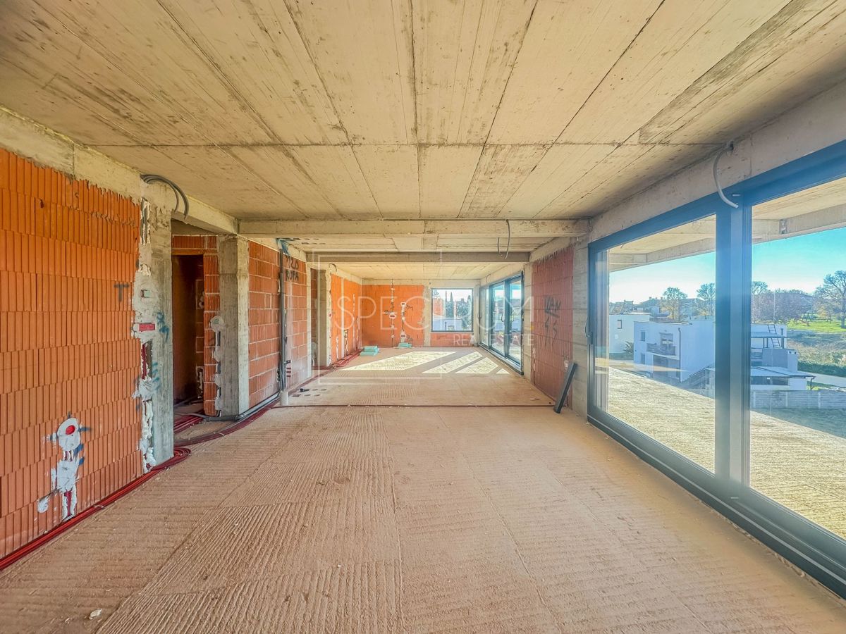 Istra, Poreč Prodaje se moderan penthouse sa krovnom terasom u Poreču. Stan se nalazi na 2.katu novoizgrađene stambene zgrade sa 5 stambenih jedinica. Površina stambenog prostora iznosi 153.35 m2. Stan se sastoji od open space dnevnog boravka sa kuhinjo