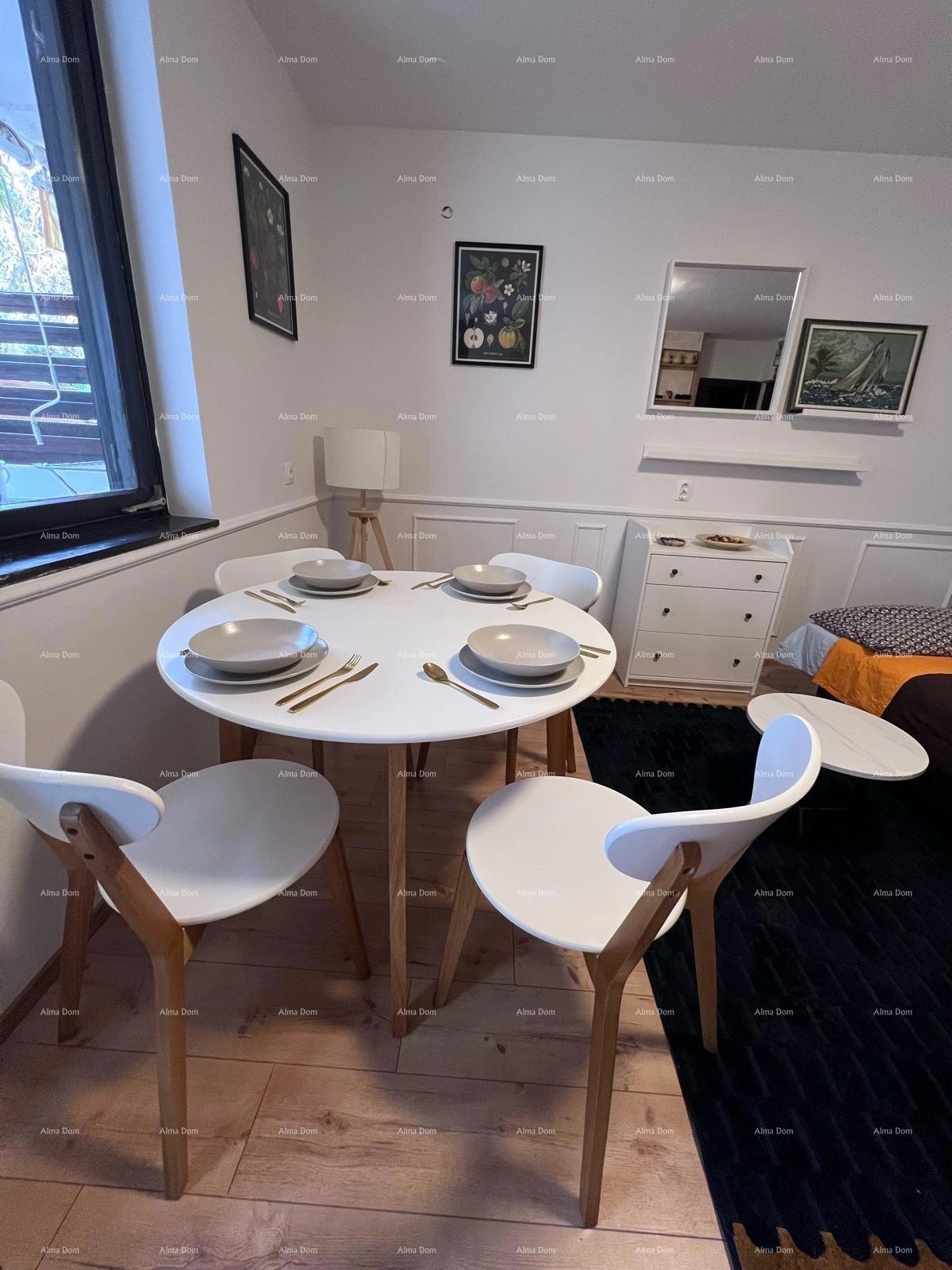 Na prodaju: Šarmantan stan u Červar Poratu. Prodaje se potpuno renoviran i namješten stan u srcu Červar Porata, smješten u mirnom okruženju zelenila. Detalji stana: Površina: 29 m² + 23 m² nenatkrivene terase – savršene za uživanje na otvorenom Dnevni