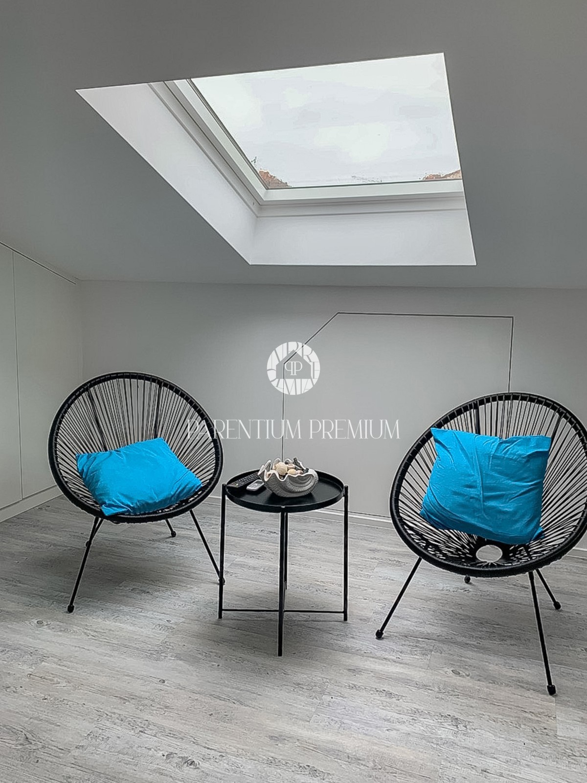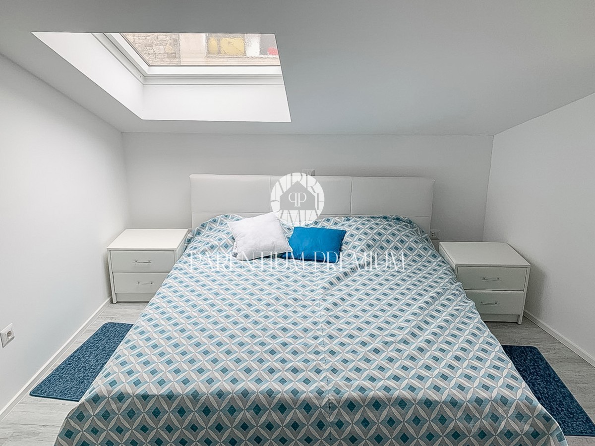 Istra, Poreč Prodaje se luksuzno renoviran stan na 1. katu u samom centru grada Poreča, 30m od mora. Stan je ukupne površine 69.83m2, sastoji se od dnevnog boravka , kuhinje i blagovaonice, kupaonice te spavaće sobe. Kod adaptacije pazilo se na očuvanju