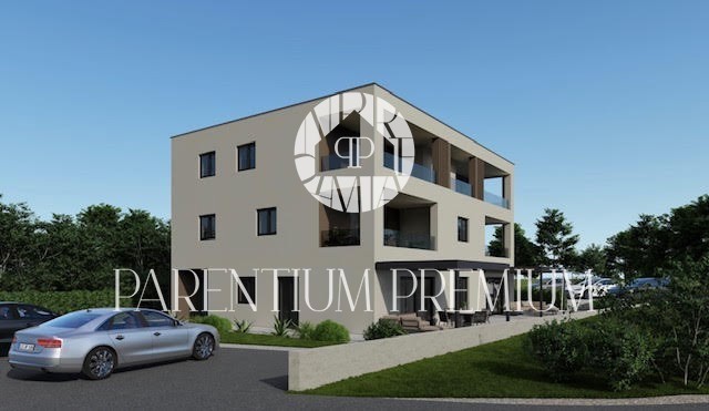 Istra, Poreč - 700m od mora i centra Prodaje se luksuzan i moderan stan na traženoj lokaciji na 1. katu zgrade sa terasom ukupne površine od 73,40m2. Stan se sastoji od ulaznog prostora, dnevnog boravka, kuhinje, blagovaone, 2 spavaće sobe, kupaonice,