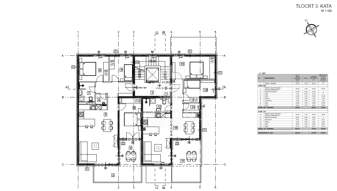 Poreč, okolica, atraktivan PENTHOUSE na trećem katu sa pogledom na mora! Nedaleko od grada Poreča na samo 8 km smjestit će se ova moderna stambena zgrada od ukupno 23 stana. Stan se nalazi na trećem katu te ima ukupno 94.72 m2. Sastoji se od hodnika, dn