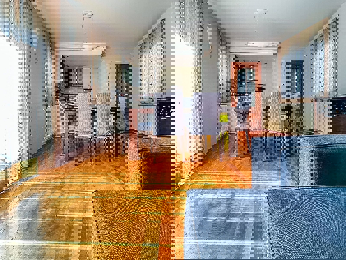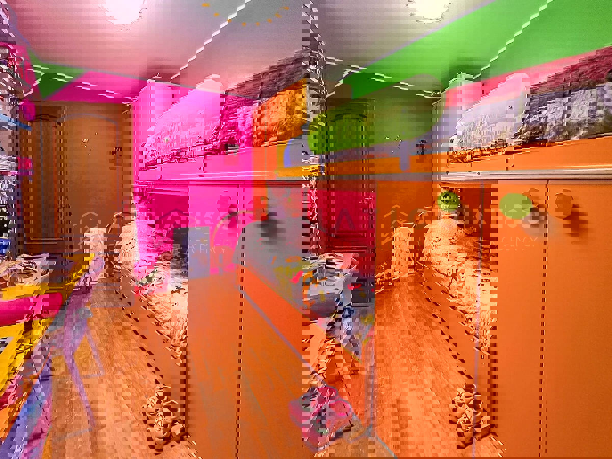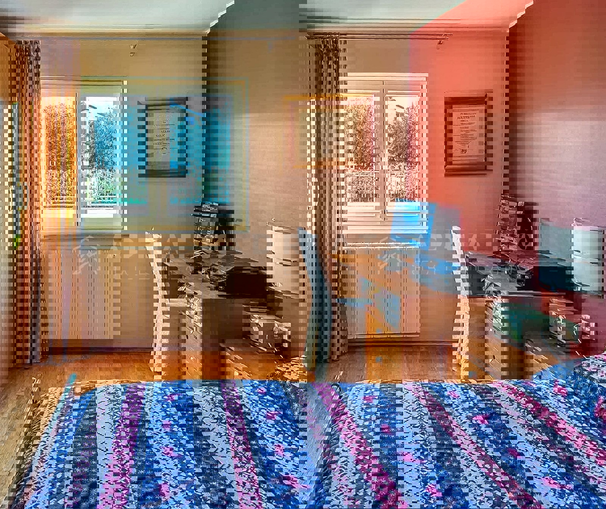 Stan s vrtom u jednom od najtraženijih kvartova Poreča U jednom od najpoželjnijih kvartova Poreča prodaje se ovaj prekrasan stan u prizemlju, idealan za obiteljski život ili investiciju u turizam. Stan ima dvije prostrane spavaće sobe, funkcionalan raspor