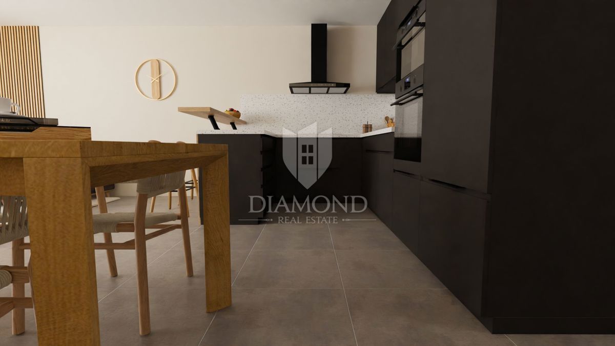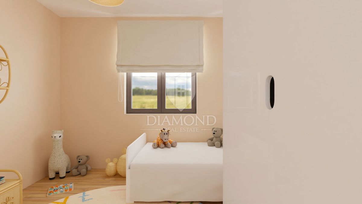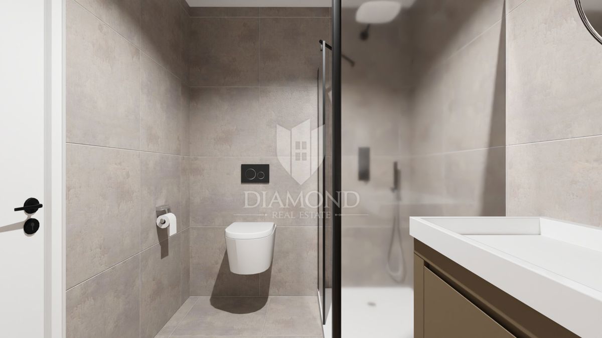 Poreč, okolica, dvosoban stan u prizemlju nedaleko od mora! Nedaleko od grada Poreča na samo 8 km smjestit će se ova moderna stambena zgrada sa ukupno 23 stana. Stan se nalazi u prizemlju te ima ukupno 87.24 m2. Sastoji se od hodnika, dnevnog boraka, bl