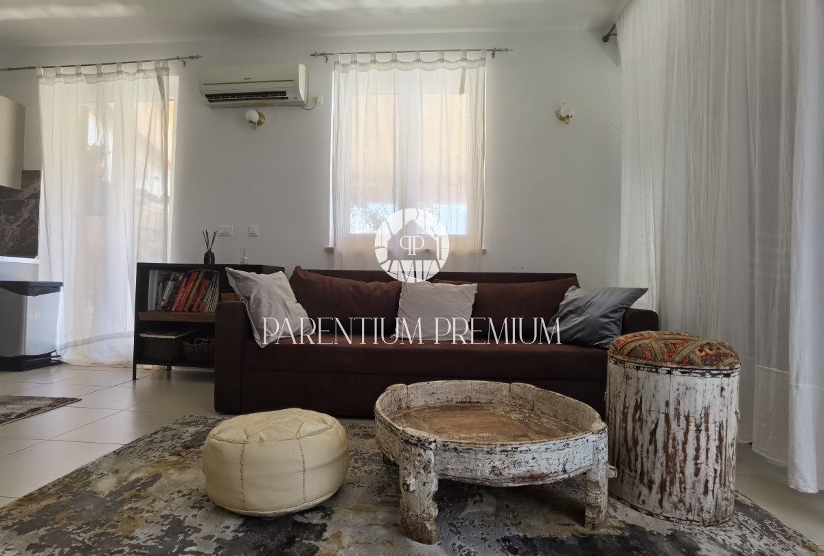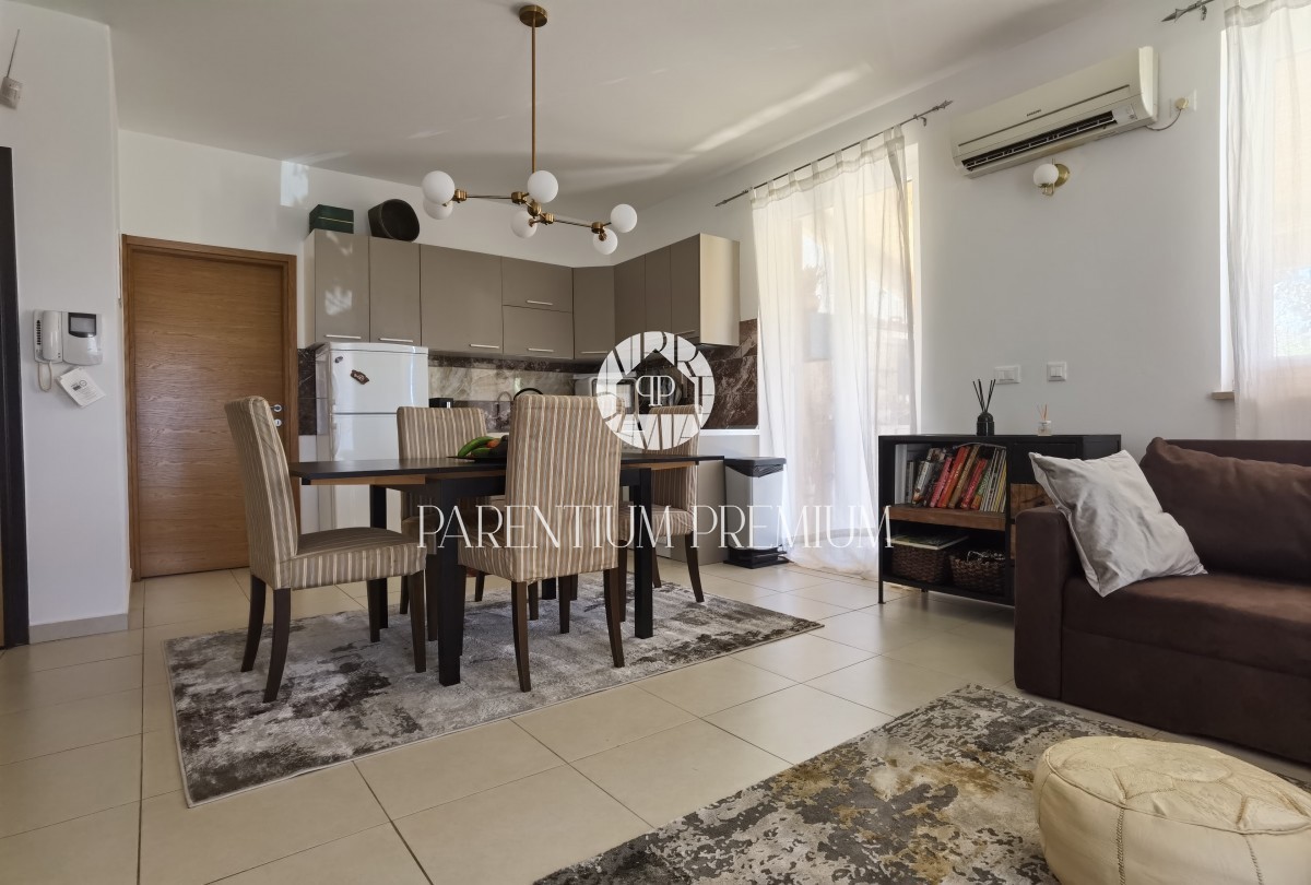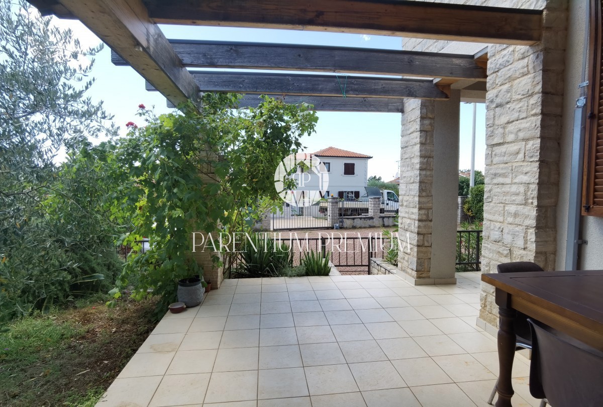 Istra, Poreč Na samo 4 km od centra grada i 3 km od prvih plaža, u mirnom mjestu smjestio se ovaj prekrasan stan u prizemlju manje zgrade. Stan površine 62,67 m2 sastoji se od ulaznog hodnika, dvije spavaće sobe, kupaonice, kuhinje i dnevnog boravka iz k