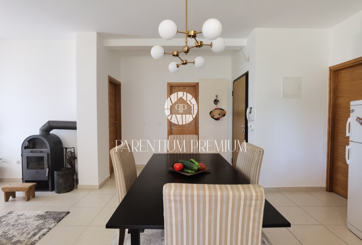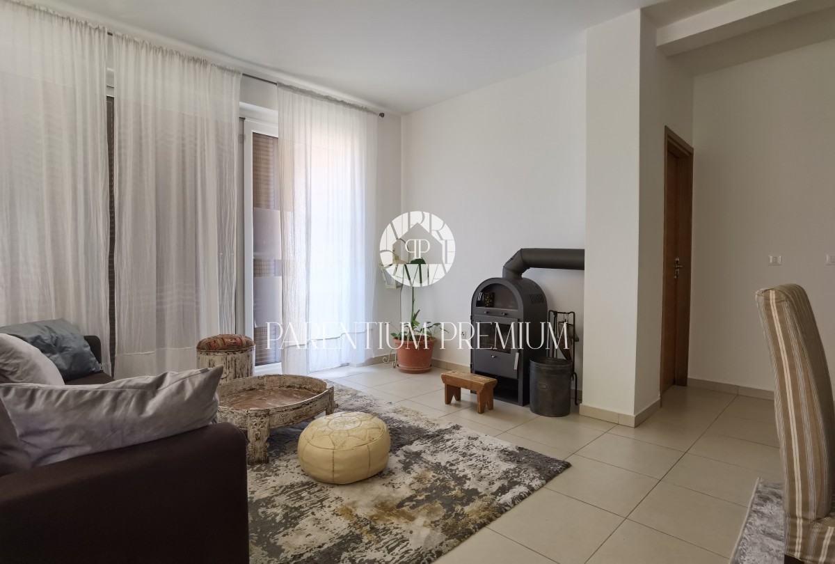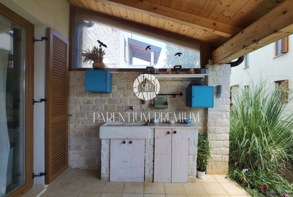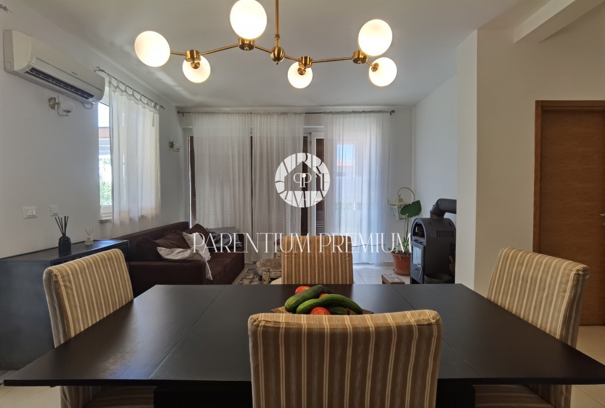 Istra, Poreč Na samo 4 km od centra grada i 3 km od prvih plaža, u mirnom mjestu smjestio se ovaj prekrasan stan u prizemlju manje zgrade. Stan površine 62,67 m2 sastoji se od ulaznog hodnika, dvije spavaće sobe, kupaonice, kuhinje i dnevnog boravka iz k