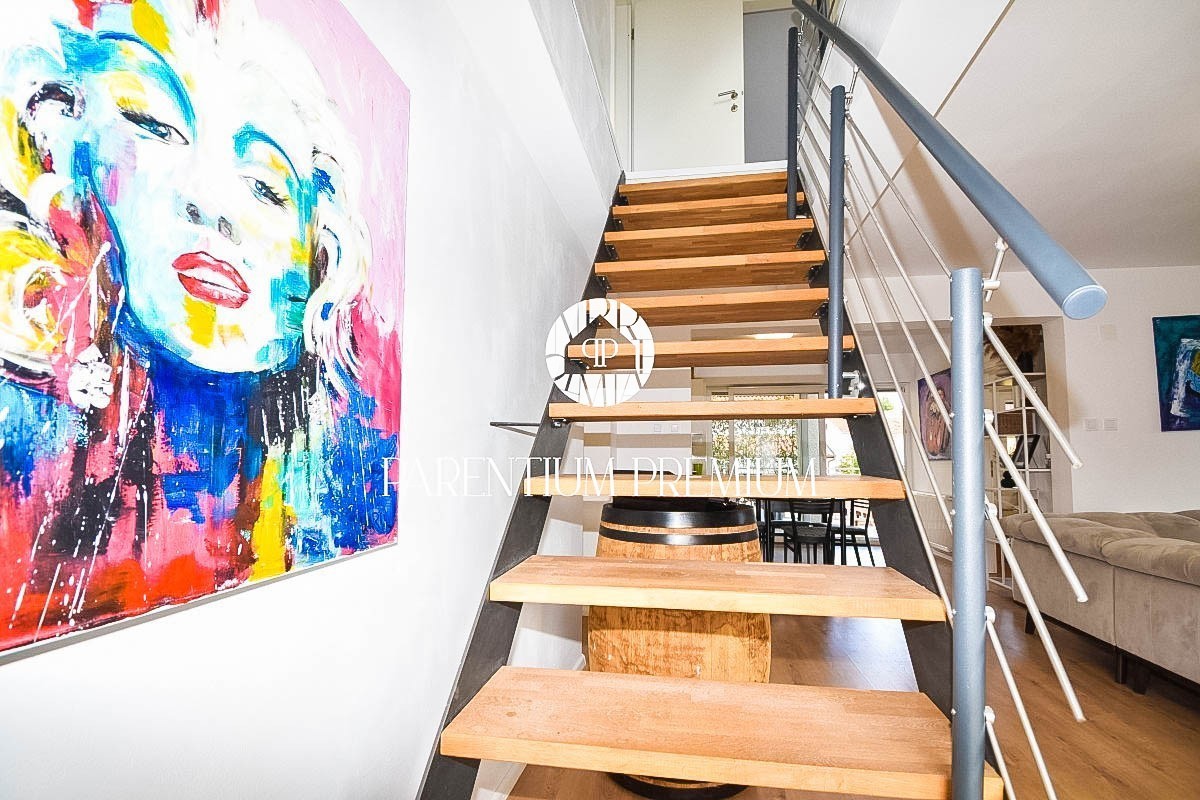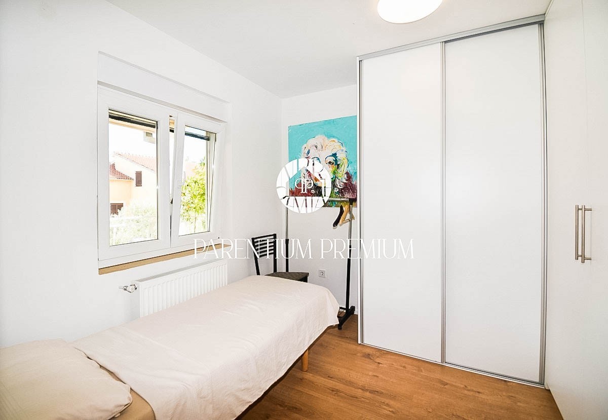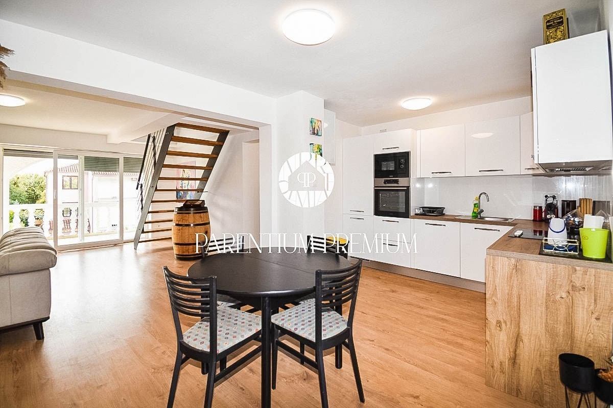 Istra, Poreč - 1500m od mora! Nedaleko od prekrasnih plaža u mirnome predgrađu Poreča smjestio se ovaj prostrani stan ukupne površine od 125,33m2. Stan se nalazi u zgradi od samo 5 stanova i podijeljen je na 2 etaže. Na 1. katu se nalazi otvoreni dnevn