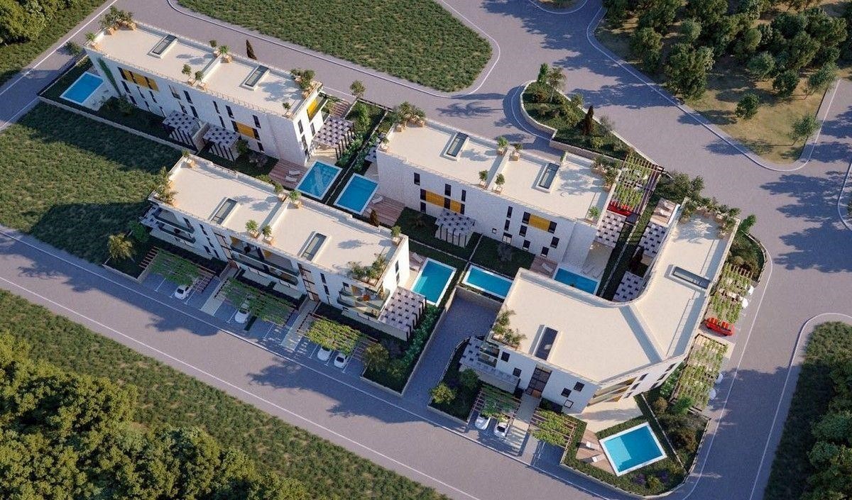 Novi projekt s pet modernih zgrada nedaleko od centra Poreča (600 m). Svaka zgrada sastoji se od prizemlja, I. kata, II. kata i krovne terase. Stan F5- PENTHOUSE - nalazi se na II. katu zgrade, ukupne stambene površine 132,19 m2 sastoji se od hodnika, dvi