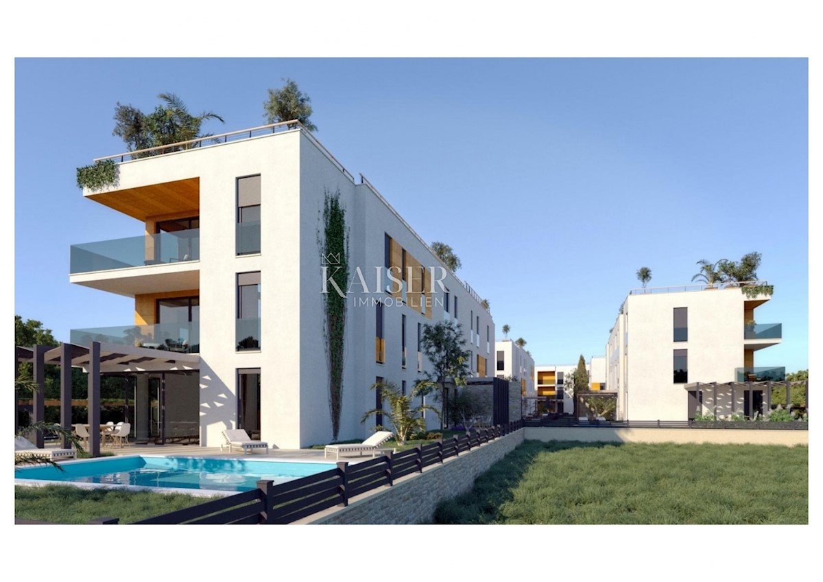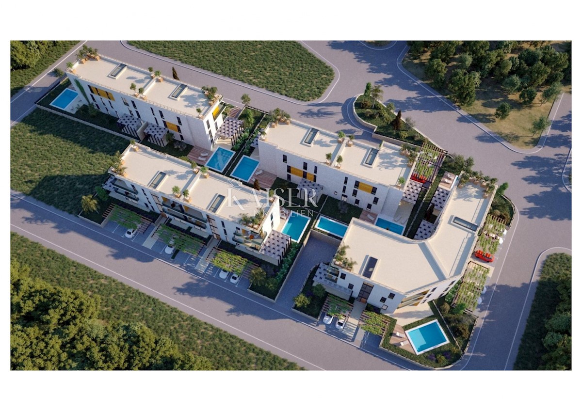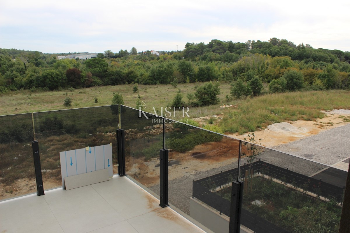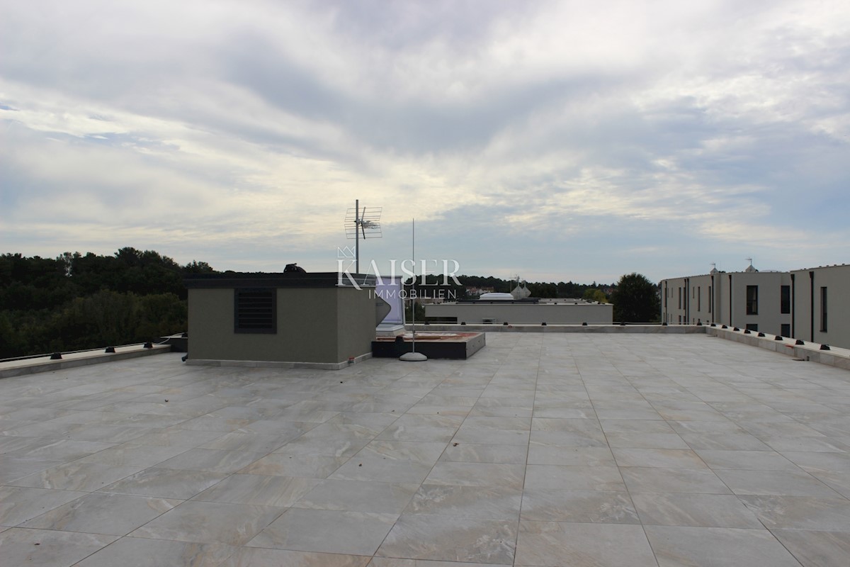 Poreč stan 177m2 penthouse Prostrani stan od 132m2 u novogradnji na mirnoj lokaciji. Stan se sastoji od: 4 sobe od kojih jedna ima vlastito kupatilo i lođu, posebne prostorije koja je namjenjena za vešeraj, još jednog kupatila te velikog dnevnog boravka