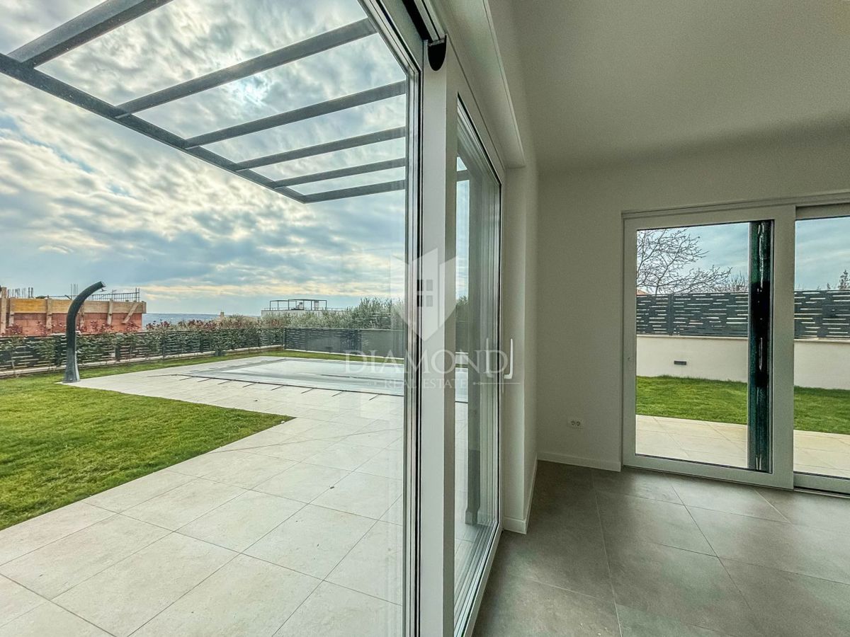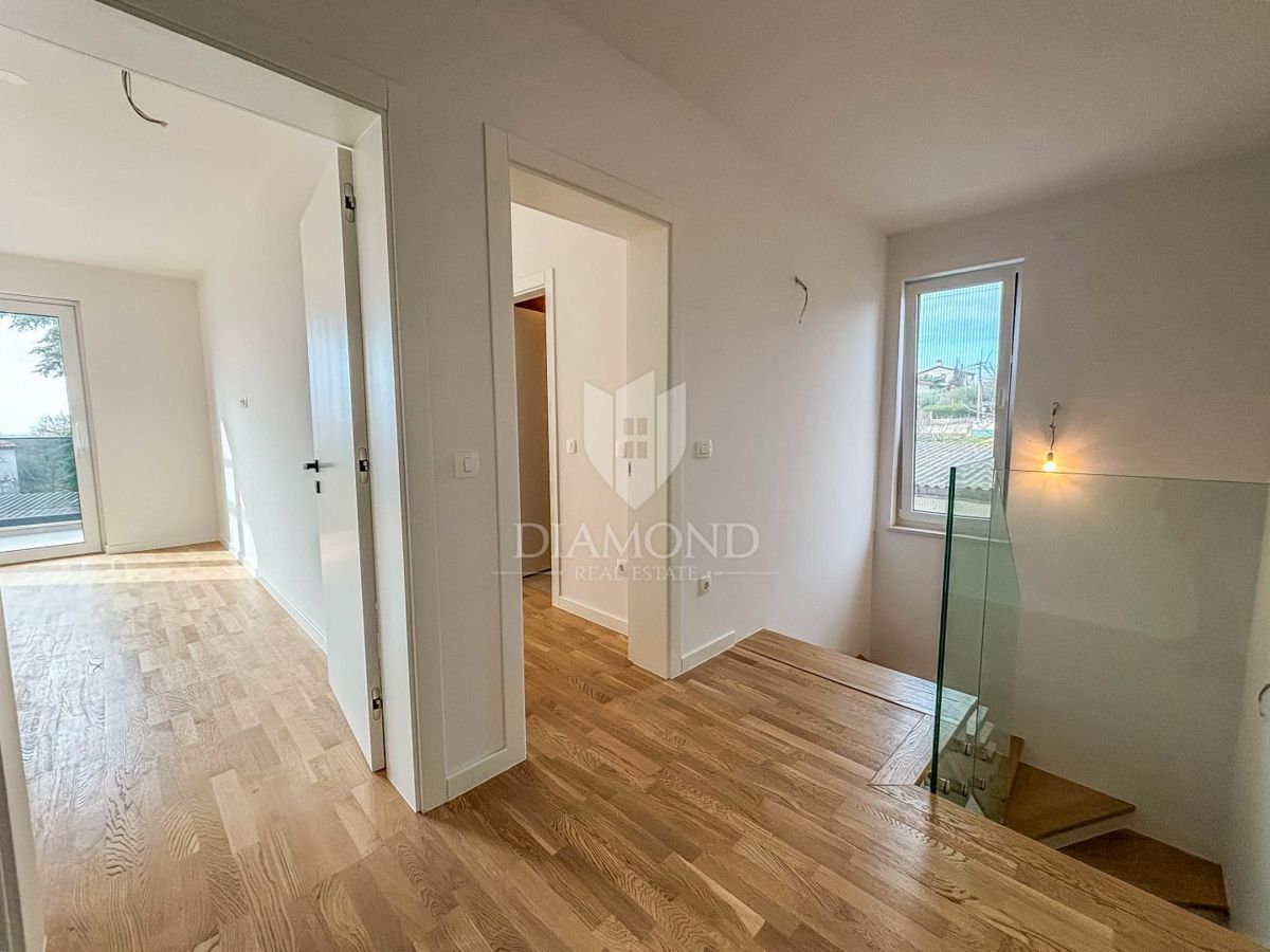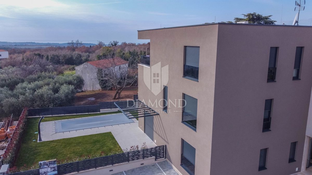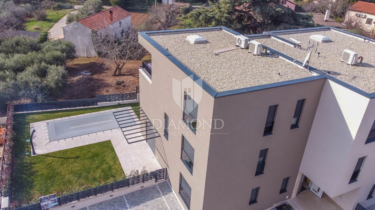 Poreč, okolica, prostrani dvoetažni stan sa bazenom! U mirnom mjestu na samo 3 km udaljenosti od prvih plaža smjestila se ova luksuzna stambena zgrada od ukupno četiri dvoetažna stana. Stanovi su veoma prostrani te prostiru na dvije etaže. U prizemlju st