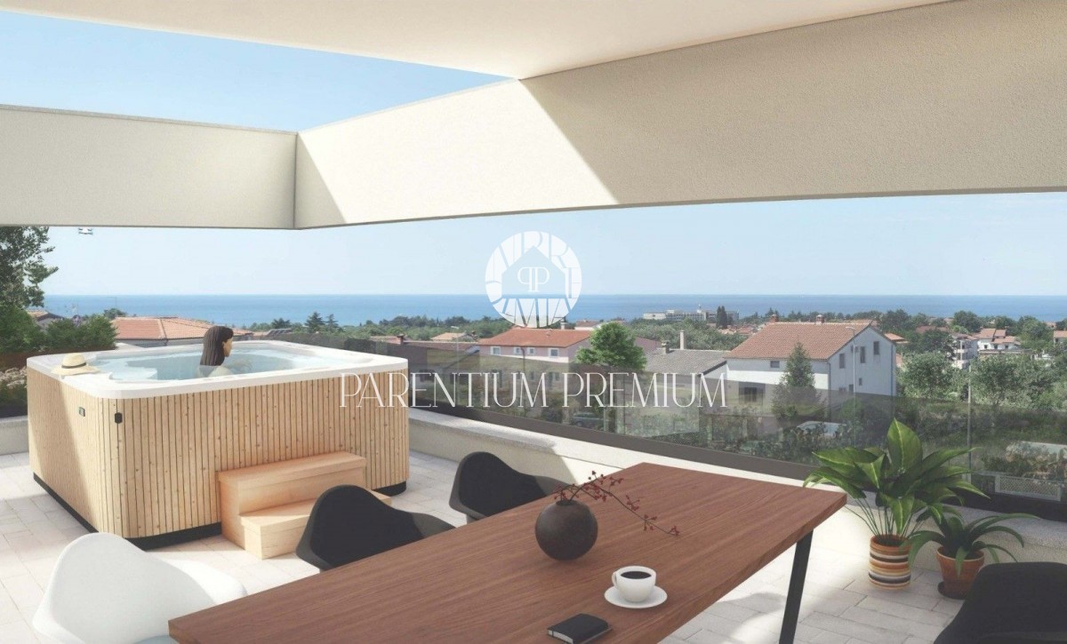 Moderni penthouse sa krovnom terasom i bazenom u blizini plaže i centra Poreča