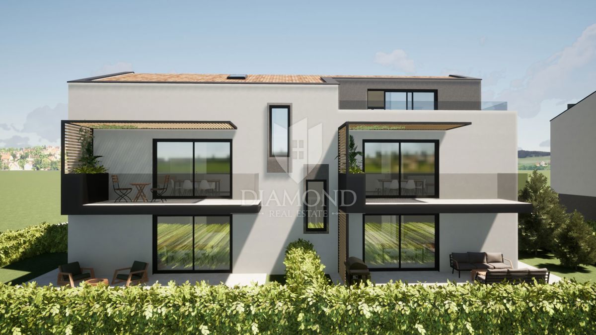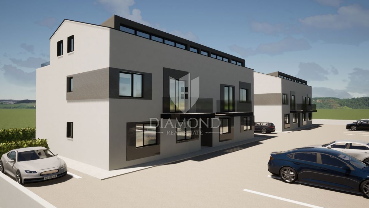 Poreč okolica, fantastičan stan na prvom katu u mirnom mjestu! U mirnom mjestu na samo 5 km udaljenosti od grada Poreča i na samo 2 km od prvih plaža smjestiti će se dvije zgrade od ukupno deset stanova. Ovaj fantastičan obiteljski stan se nalazi na prvo
