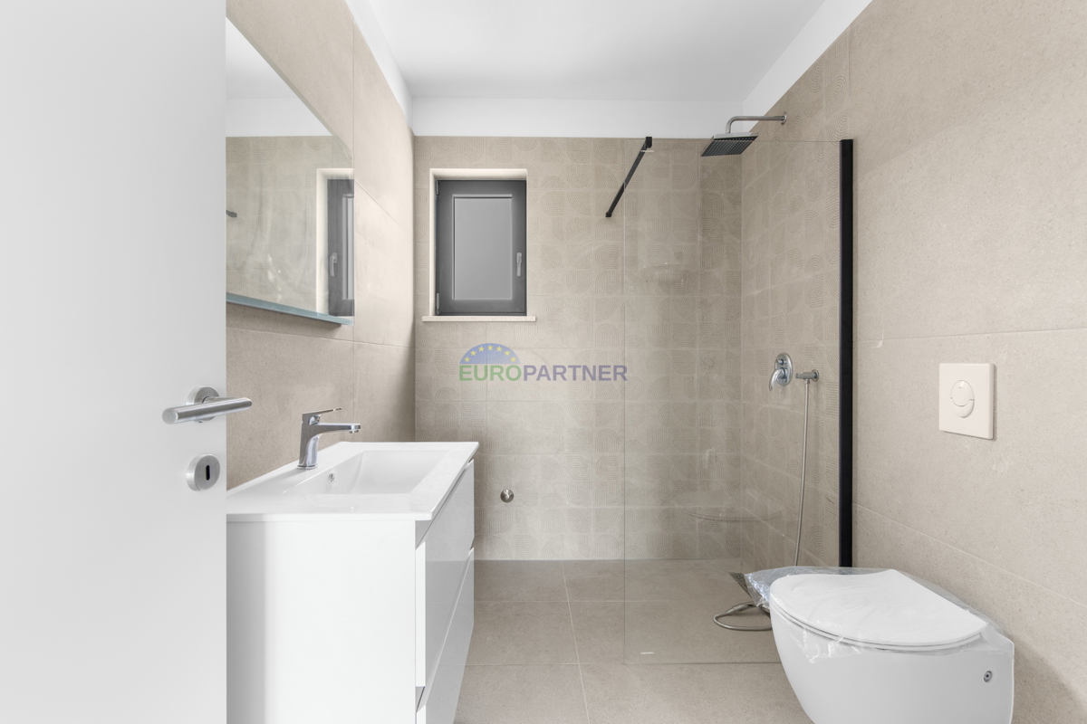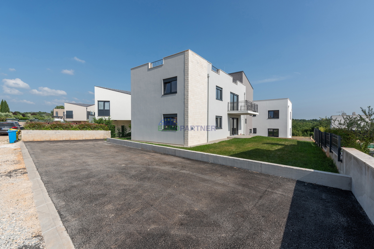 Prodaje se prekrasan stan na prvom katu s krovnom terasom u blizini Poreča. Stan se nalazi u mirnom naselju udaljenom svega 1km od prve plaže. U zgradi se sveukupno nalazi 4 stambene jedinice, po 2 stana u prizemlju s pripadajućim vrtom i po 2 stana na