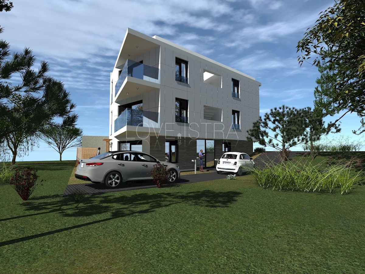 Stan u novogradnji od 56m2 na jednoj najboljih lokacija u Poreču. Udaljen od mora 200m a do centra grada 1,5km. Cijena:260.000€