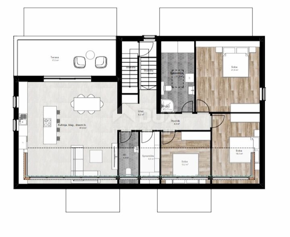 ISTRA, POREČ - PENTHOUSE na mirnoj lokaciji 2km od mora Okupan ugodnom mediteranskom klimom, smješten u srcu zapadne istarske obale, antički gradić Poreč i njegovo priobalje sačuvanih prirodnih ljepota, uređenih parkova, borovih i hrastovih šumaraka koj