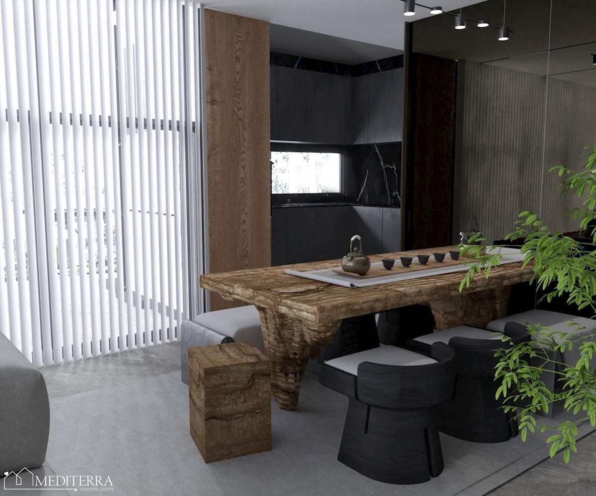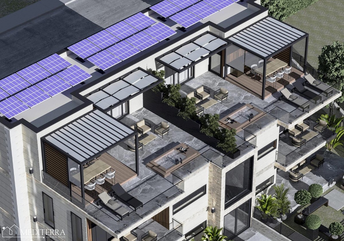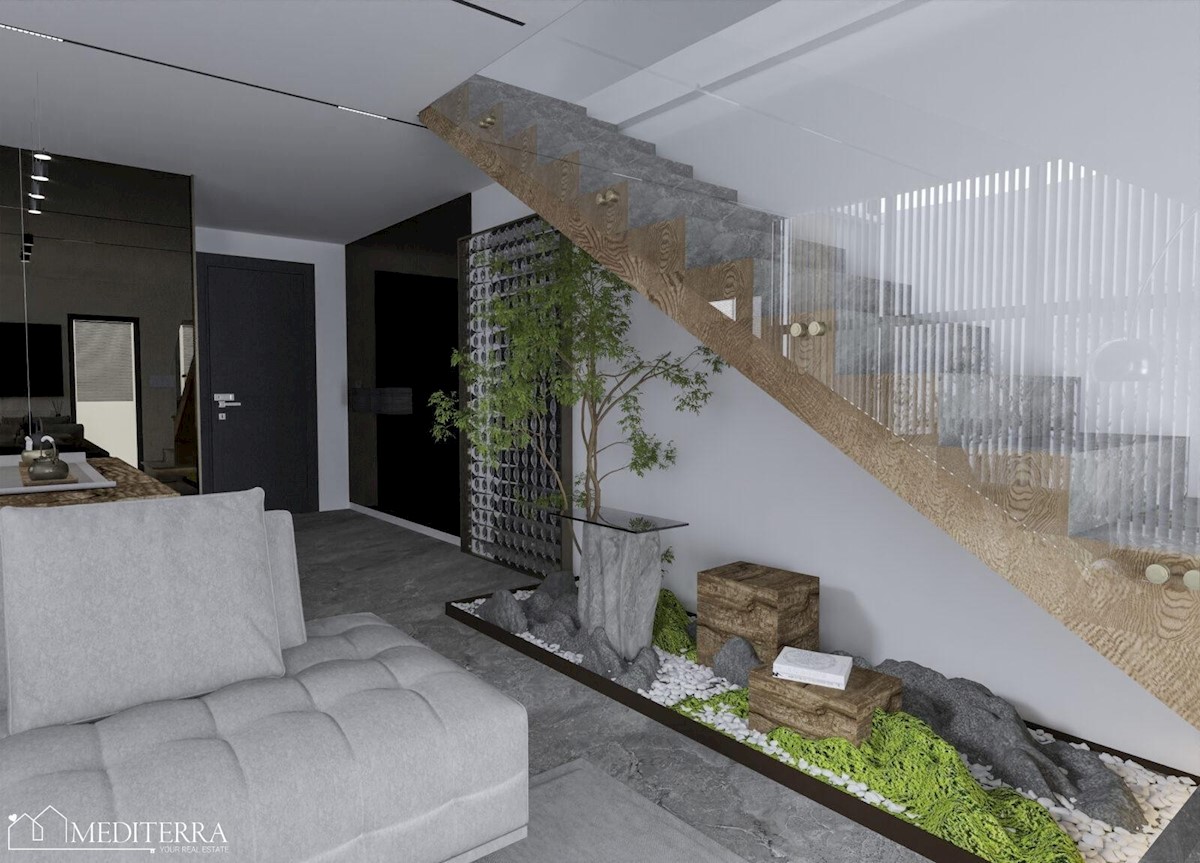Prodajemo stan u novogradnji, udaljen 5 km od centra grada Poreča, i uređenih plaža. Zgrada je u roh bau fazi, a sastoji se od prizemlja sa 2 stana, te 1. kata i 2. kata na kojima se nalaze dvoetažni stanovi.Svaki stan ima svoj neovisan ulaz i parkirno mj