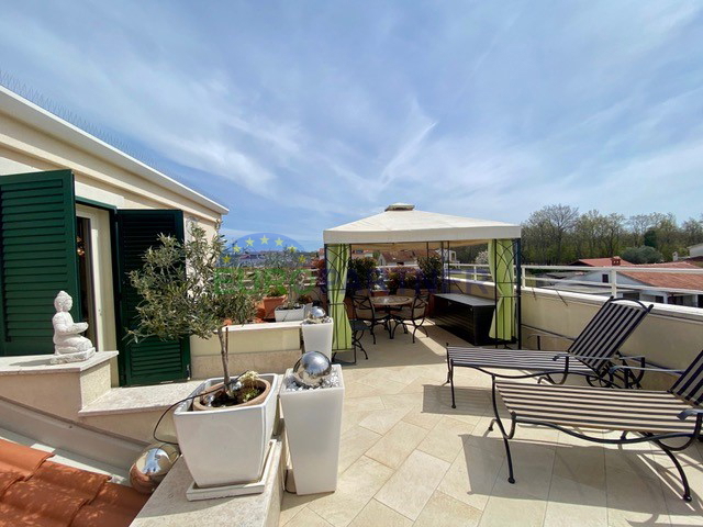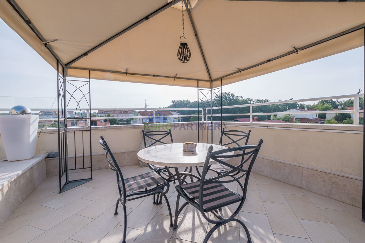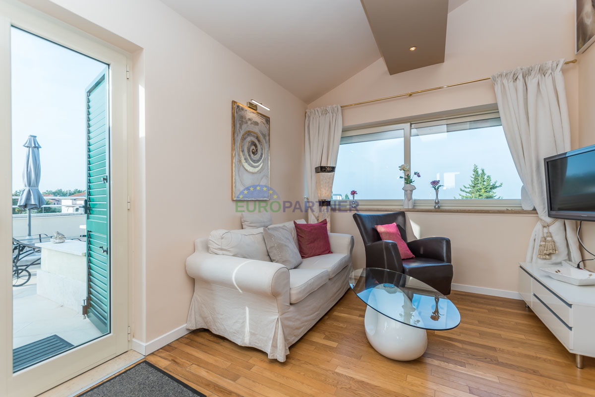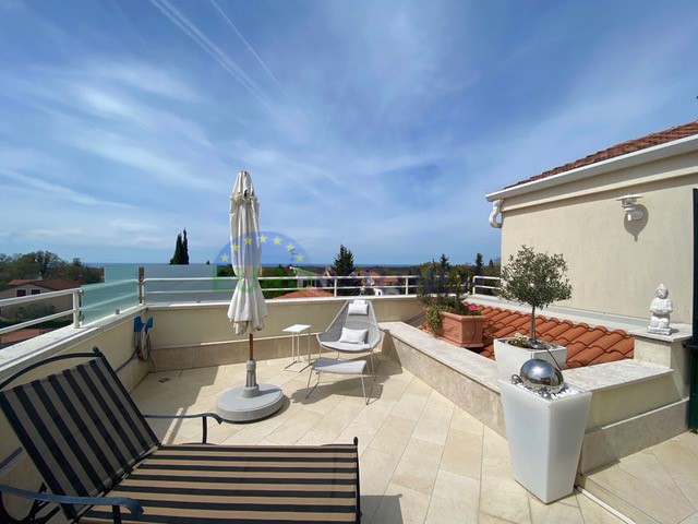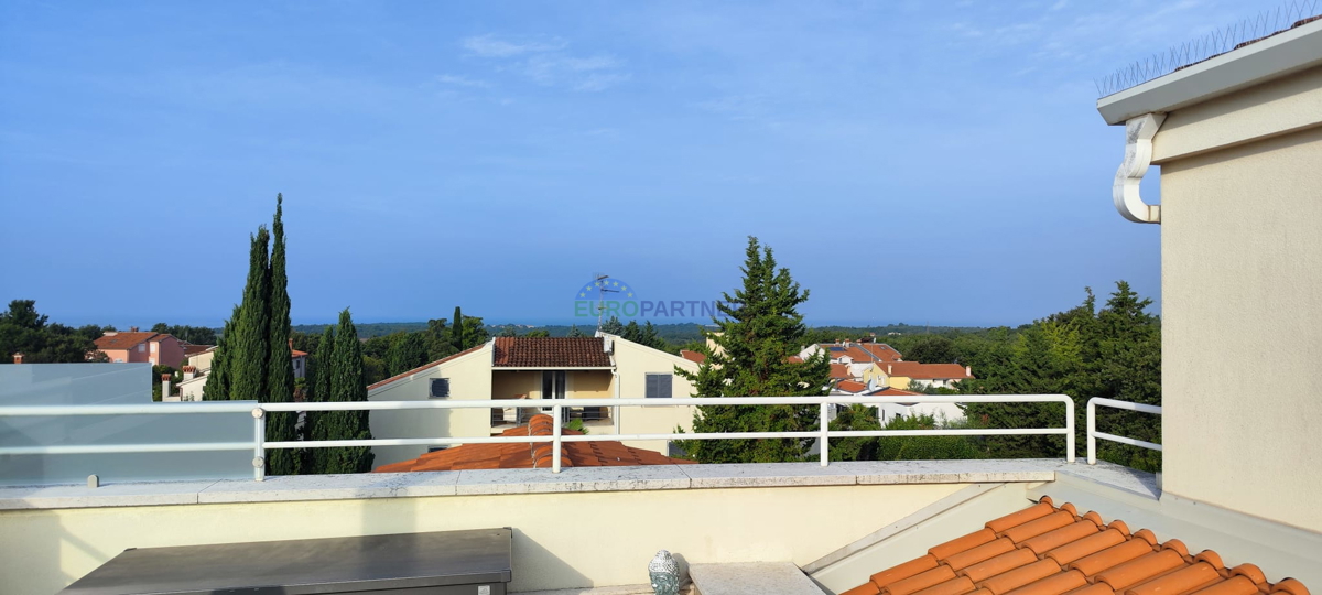 POREČ, okolica, Na prodaju je ovaj predivan stan s velikom terasom i spektakularnim pogledom na more, smješten na izvrsnoj lokaciji udaljenoj samo 4 km od predivnih plaža. Stan se nalazi u potkrovlju zgrade, pružajući vam intimnost i prekrasan panoramski