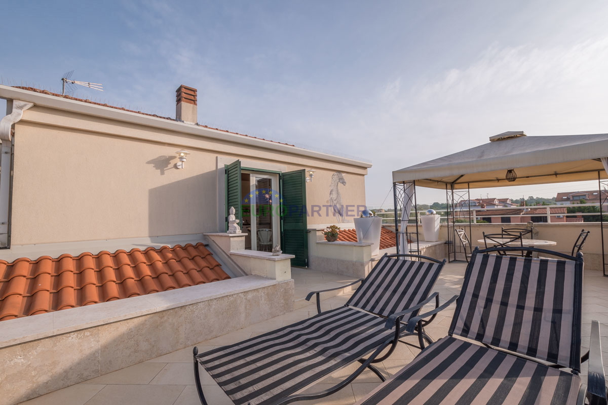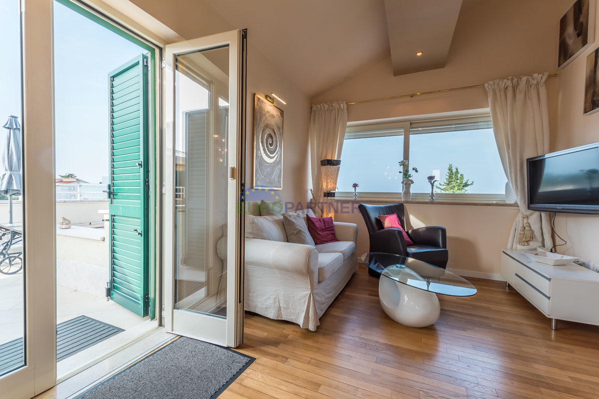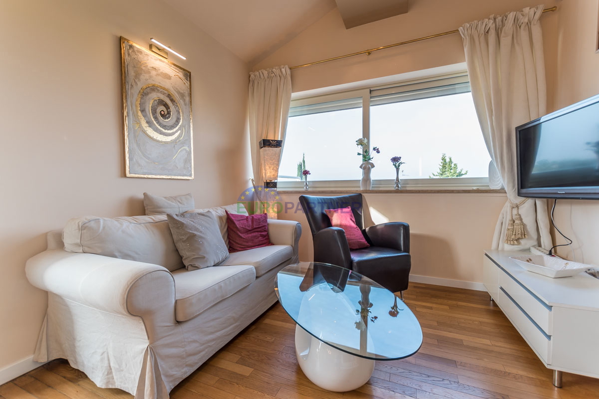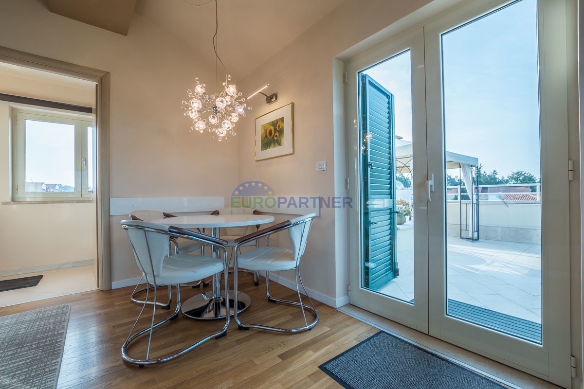 POREČ, okolica, Na prodaju je ovaj predivan stan s velikom terasom i spektakularnim pogledom na more, smješten na izvrsnoj lokaciji udaljenoj samo 4 km od predivnih plaža. Stan se nalazi u potkrovlju zgrade, pružajući vam intimnost i prekrasan panoramski