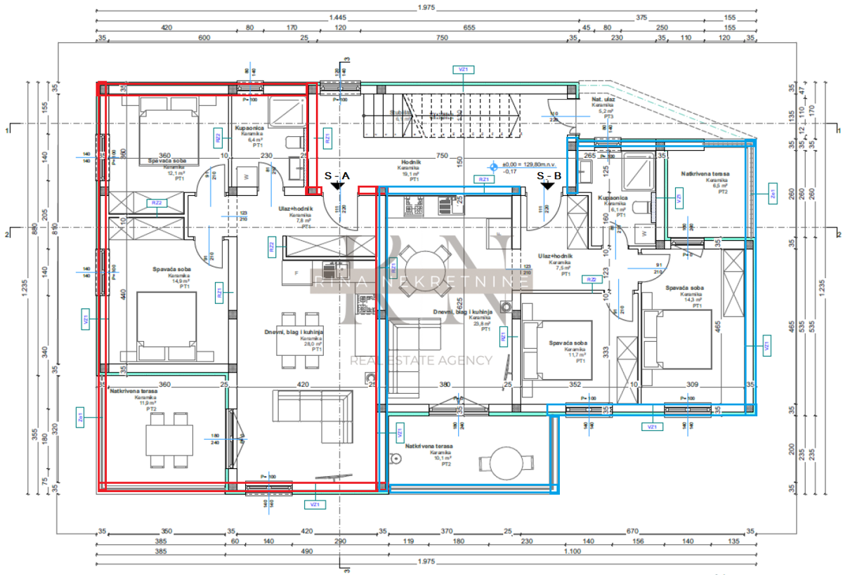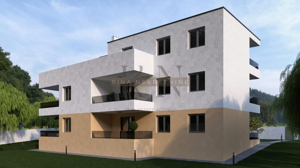 In Poreč, 8 km vom Stadtzentrum entfernt, wird derzeit ein kleineres Gebäude mit 5 Wohnungen gebaut. Eine dieser Wohnungen, Wohnung B im Erdgeschoss, hat eine Fläche von 71,70 m2. Sie besteht aus einem Eingangsbereich mit Einbauschrank, 2 Schlafzimmern (