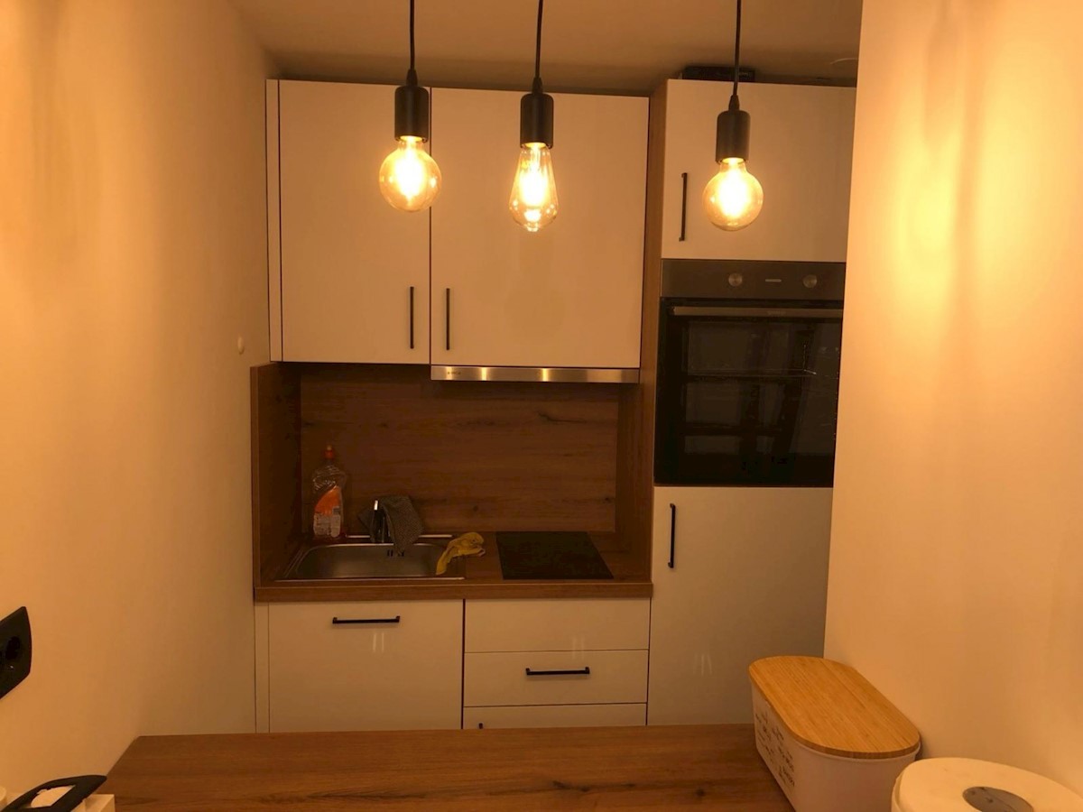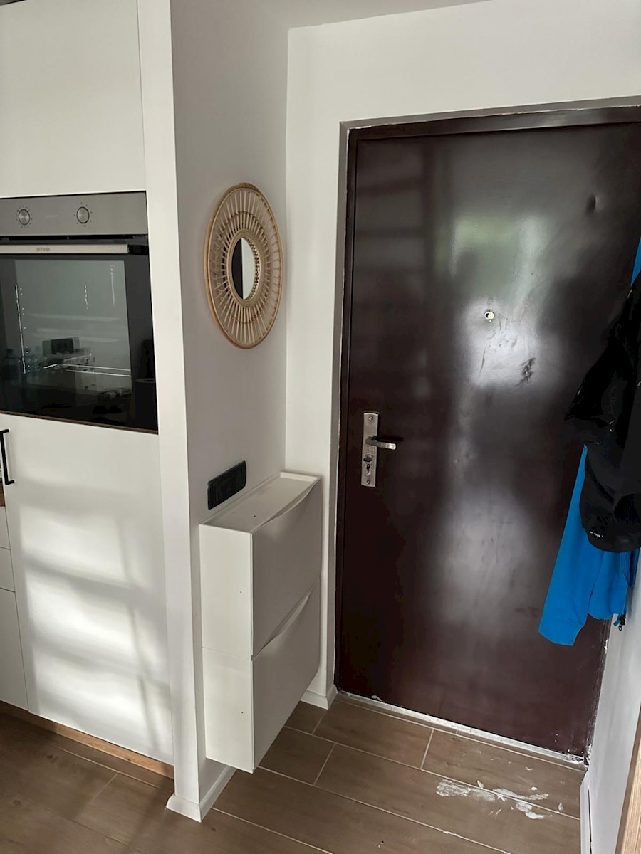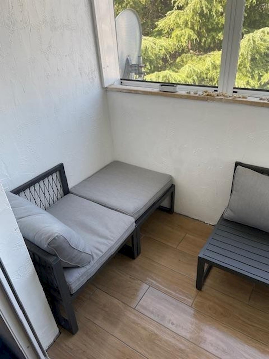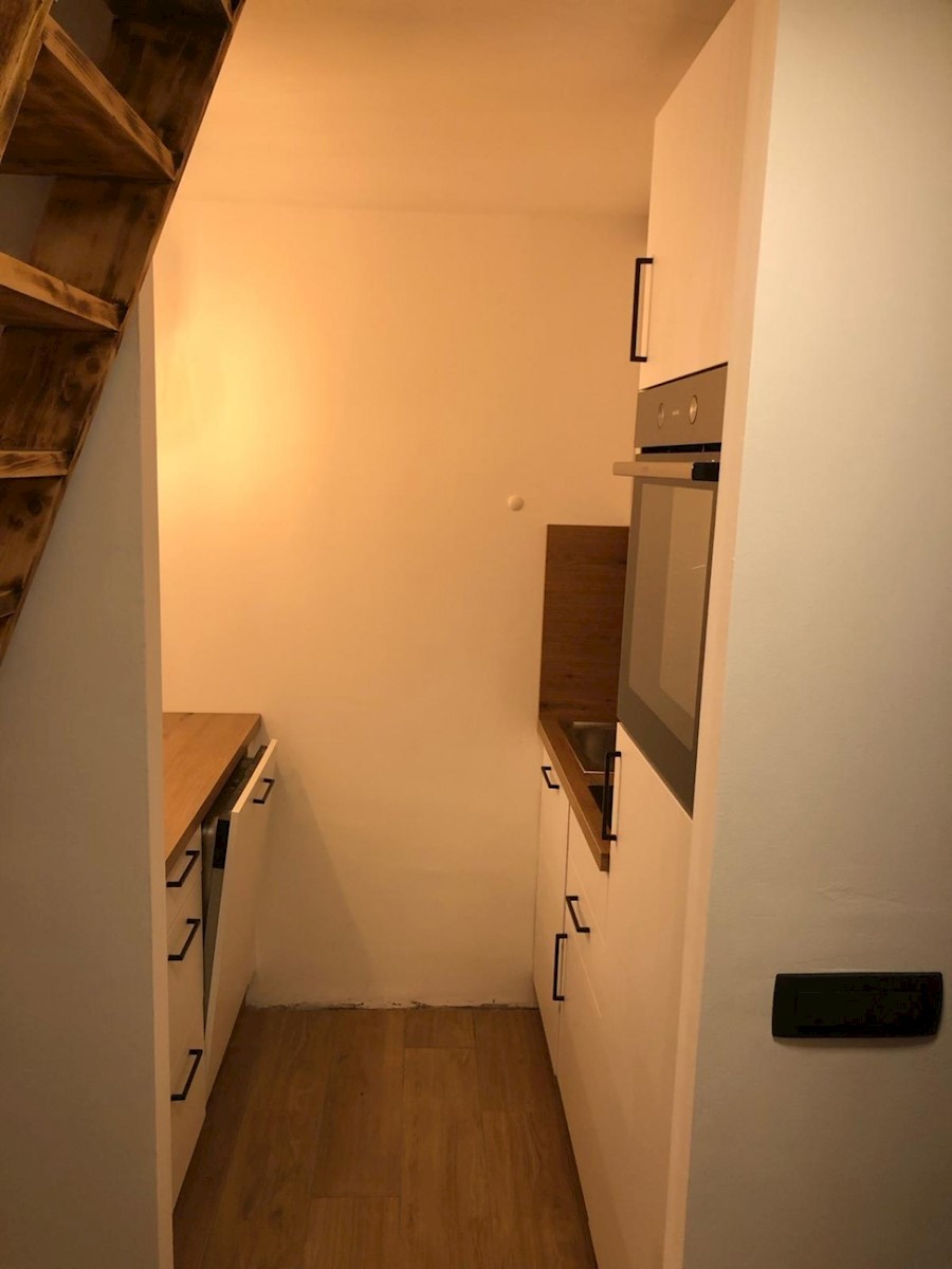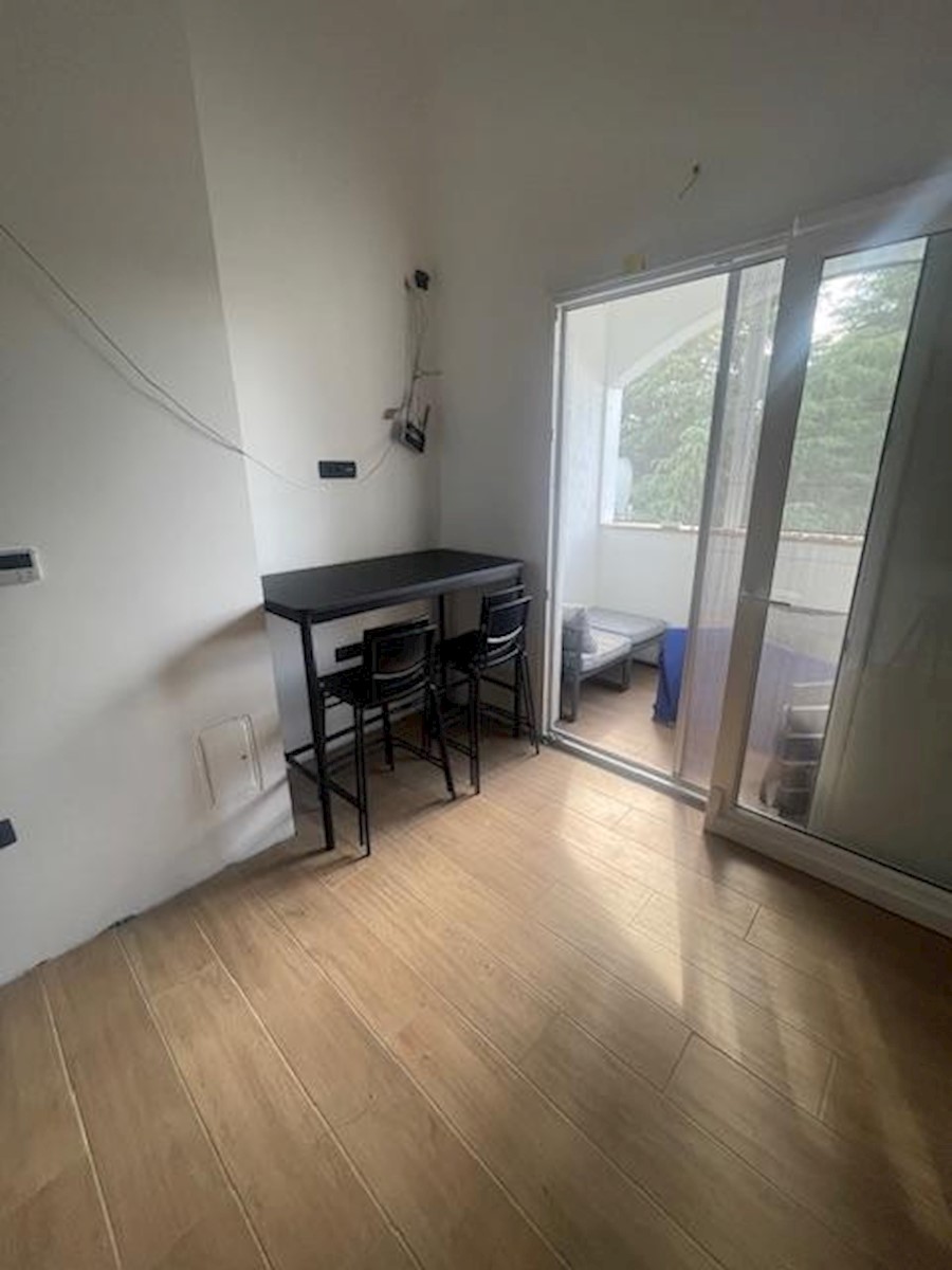 Cervar porat – ca. 150 m vom Meer entfernt steht eine komplett renovierte Dreizimmerwohnung, 46,80 m², zum Verkauf. Die Wohnung befindet sich im dritten Stock des Wohnhauses. Es enthält: ein Wohnzimmer mit Küche und Esszimmer, ein Schlafzimmer, ein Badezi