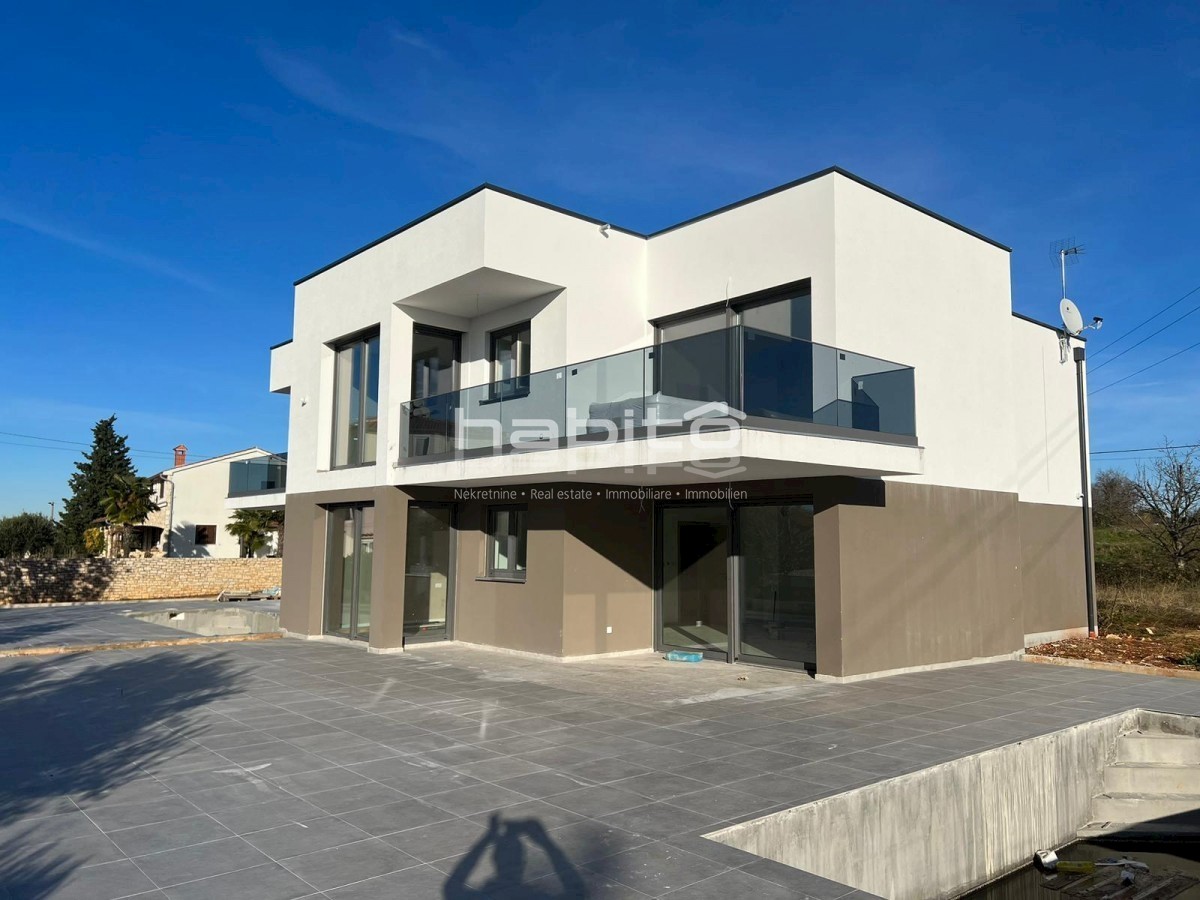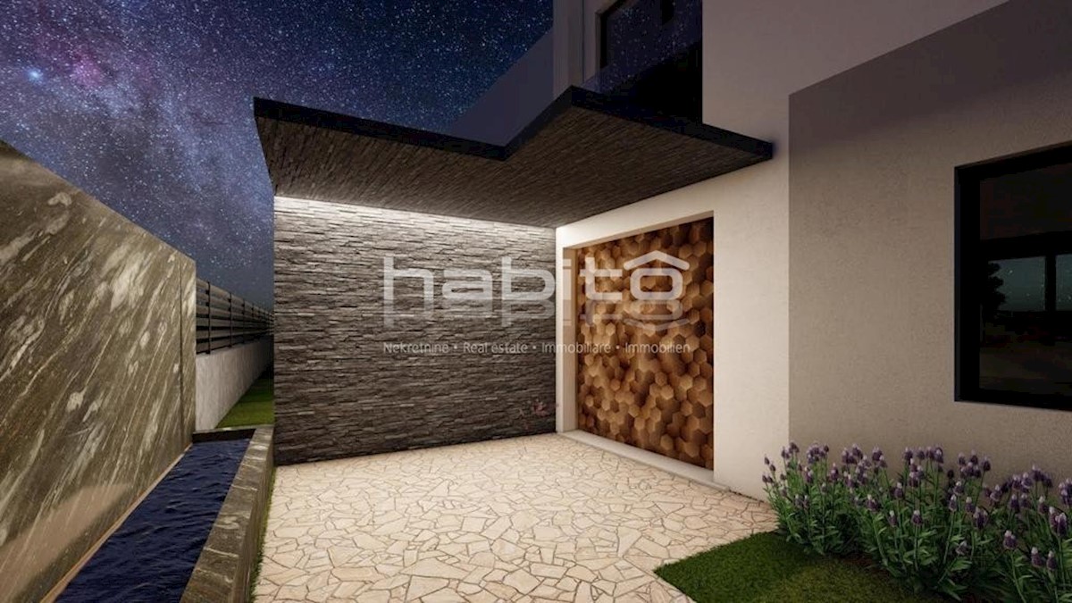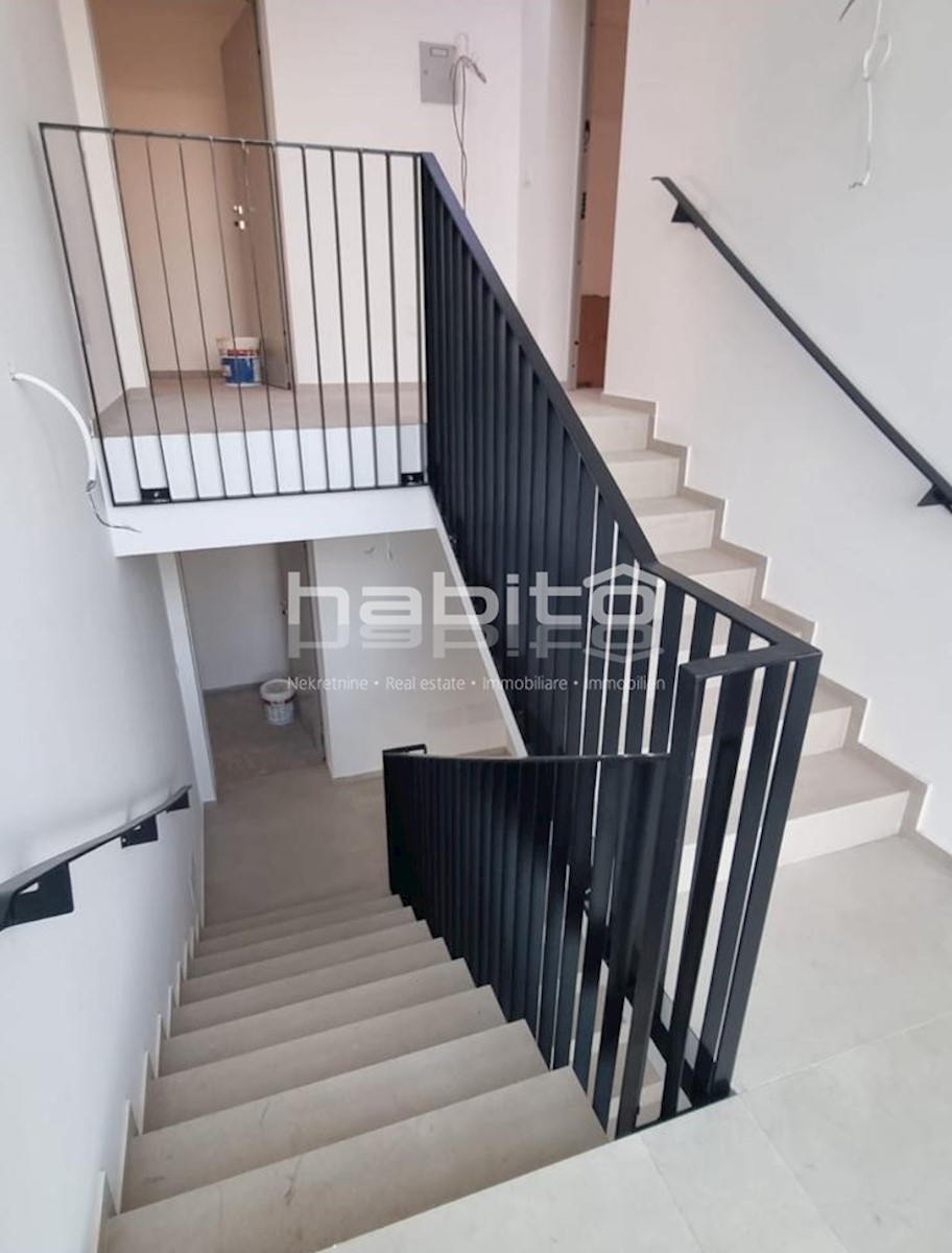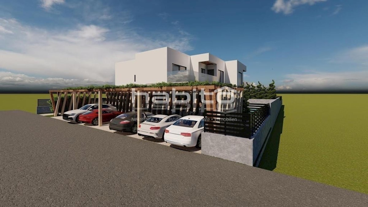 Zum Verkauf: Neue Wohnung in einer ruhigen Siedlung in der Nähe von Poreč, nur 4 km vom Meer entfernt. Diese Wohnung im Erdgeschoss mit einer Größe von 96m² und einer Terrasse von 15 m² besteht aus einem Wohnzimmer mit Küche und Essbereich, einem Flur, ei