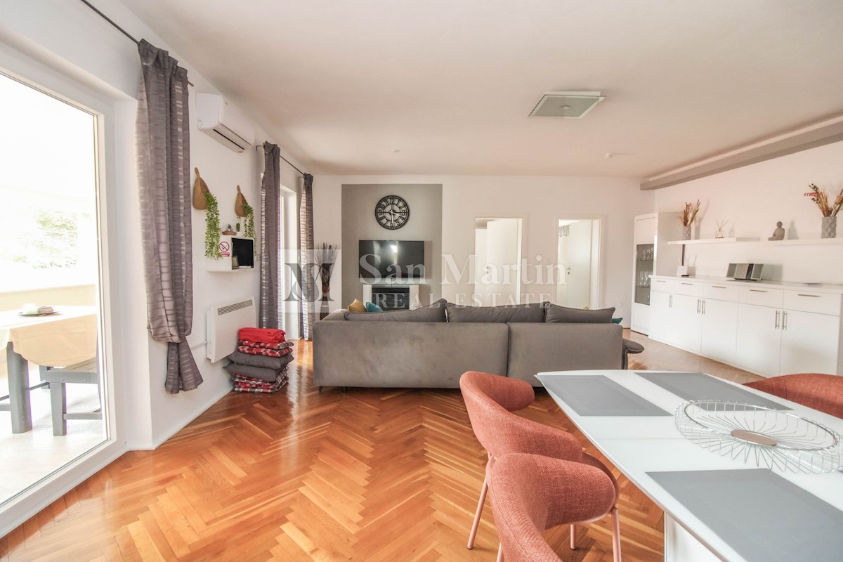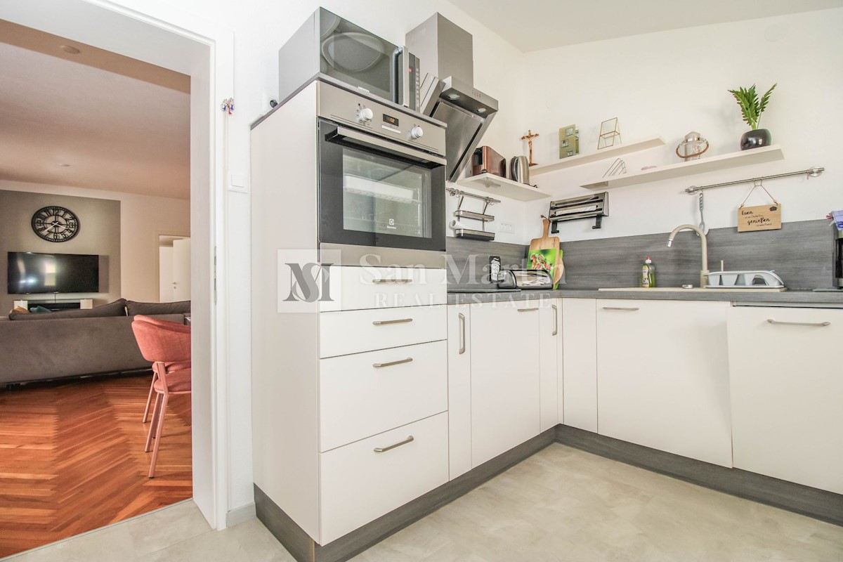 Istrien, Poreč – eine wunderschöne Wohnung in toller Lage Zum Verkauf steht eine große, komfortable Wohnung, die nur wenige Schritte vom Meer entfernt und in der Nähe aller notwendigen Annehmlichkeiten liegt. Die Gesamtfläche der Wohnung beträgt 93,46 m